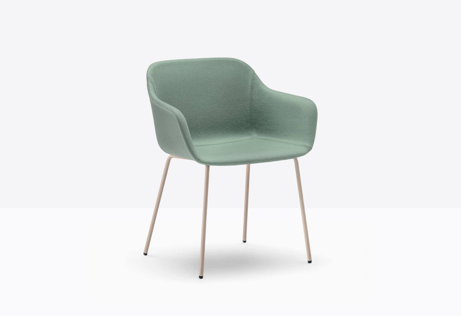 כסא אורח Babila XL עם מושב רחב ומשענות יד נדיבות, המעניקים נוחות מרבית ותמיכה אידיאלית. מעטפת מרופדת בבד המוסיפה חמימות ותחושת רכות ורגלי פלדה צינוריות המספקות יציבות ואלגנטיות.