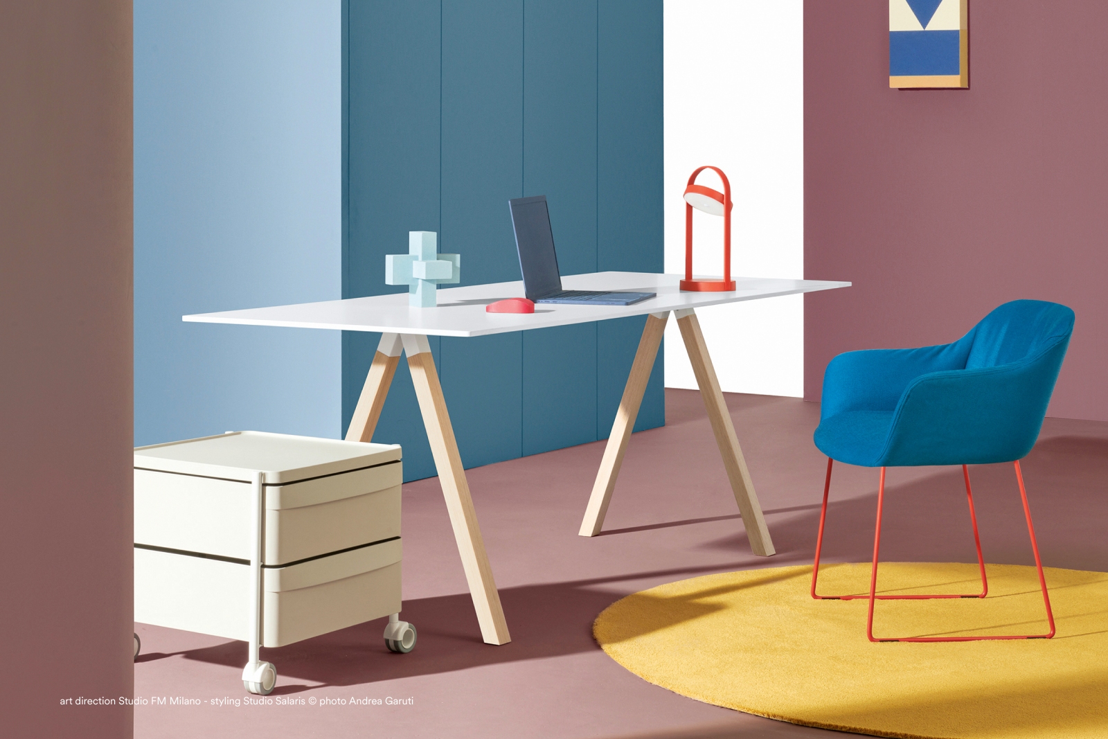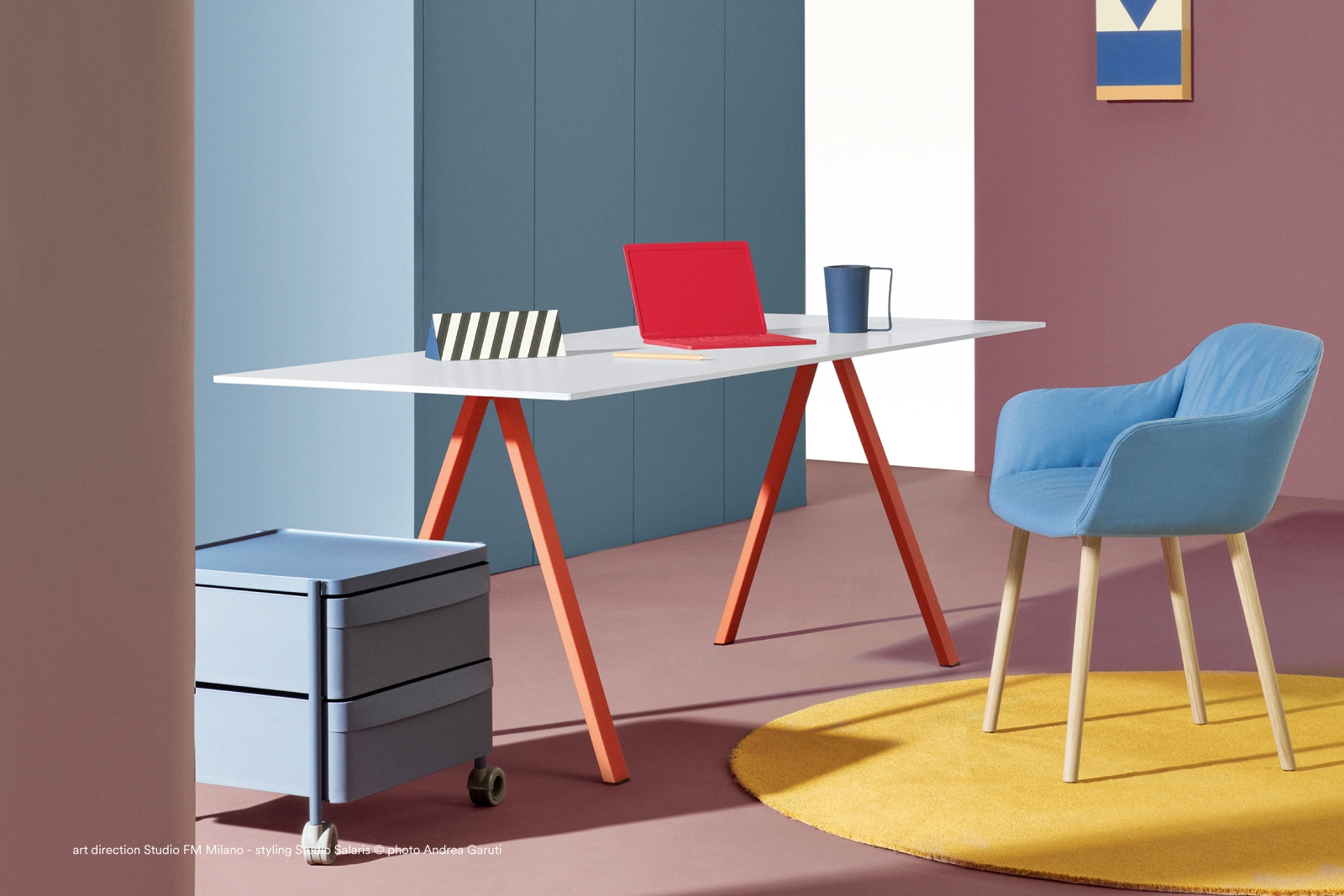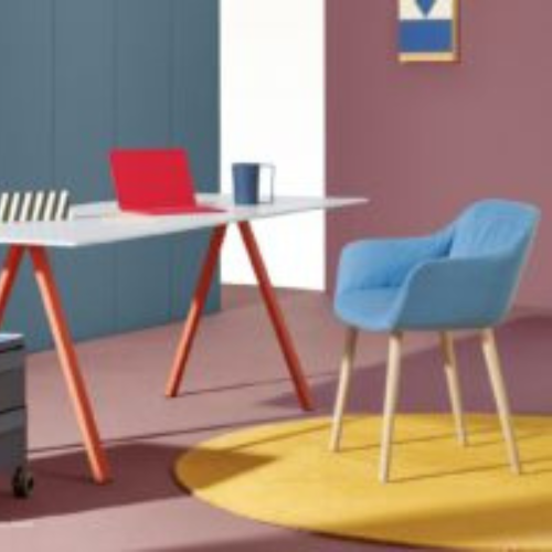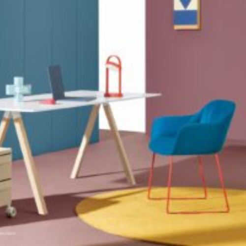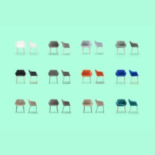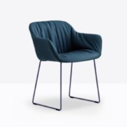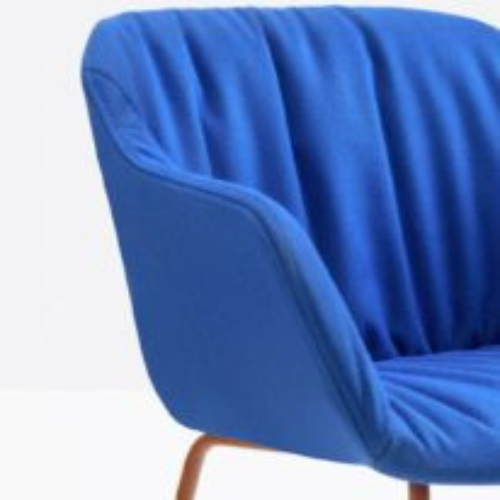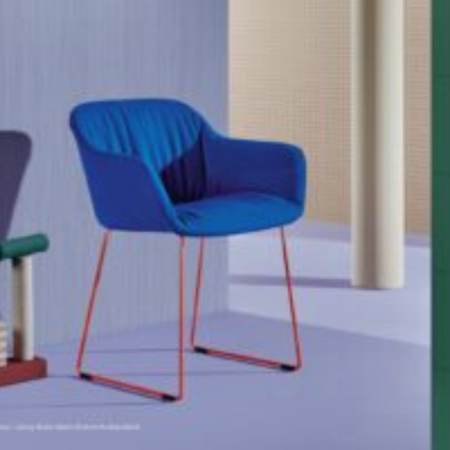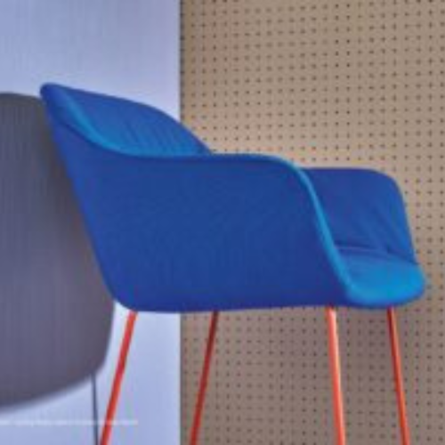 • כסא בעל משענות ידיים עם מעטפת פוליפרופילן ממוחזר.