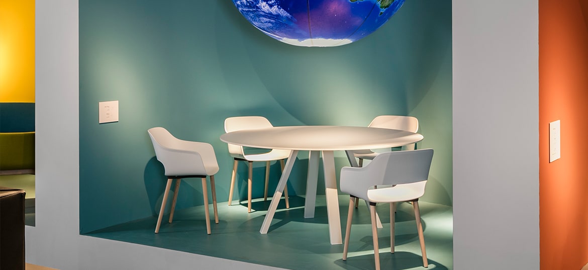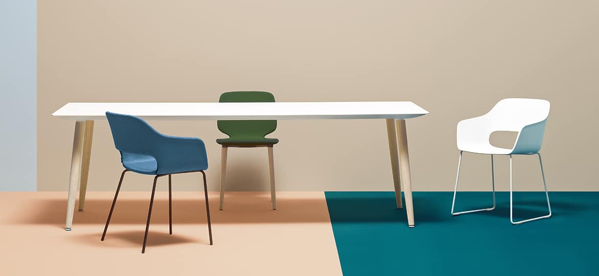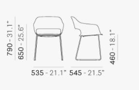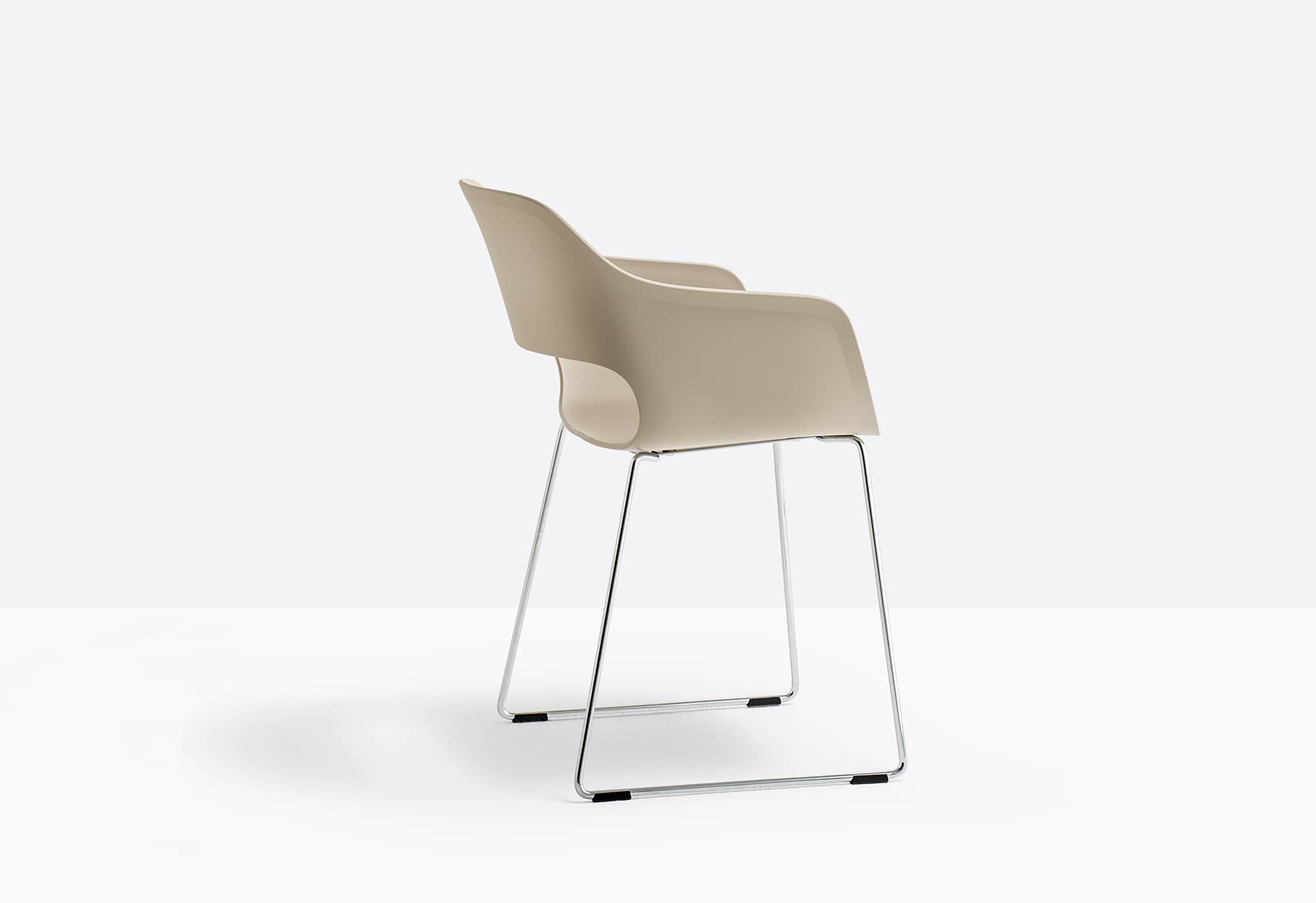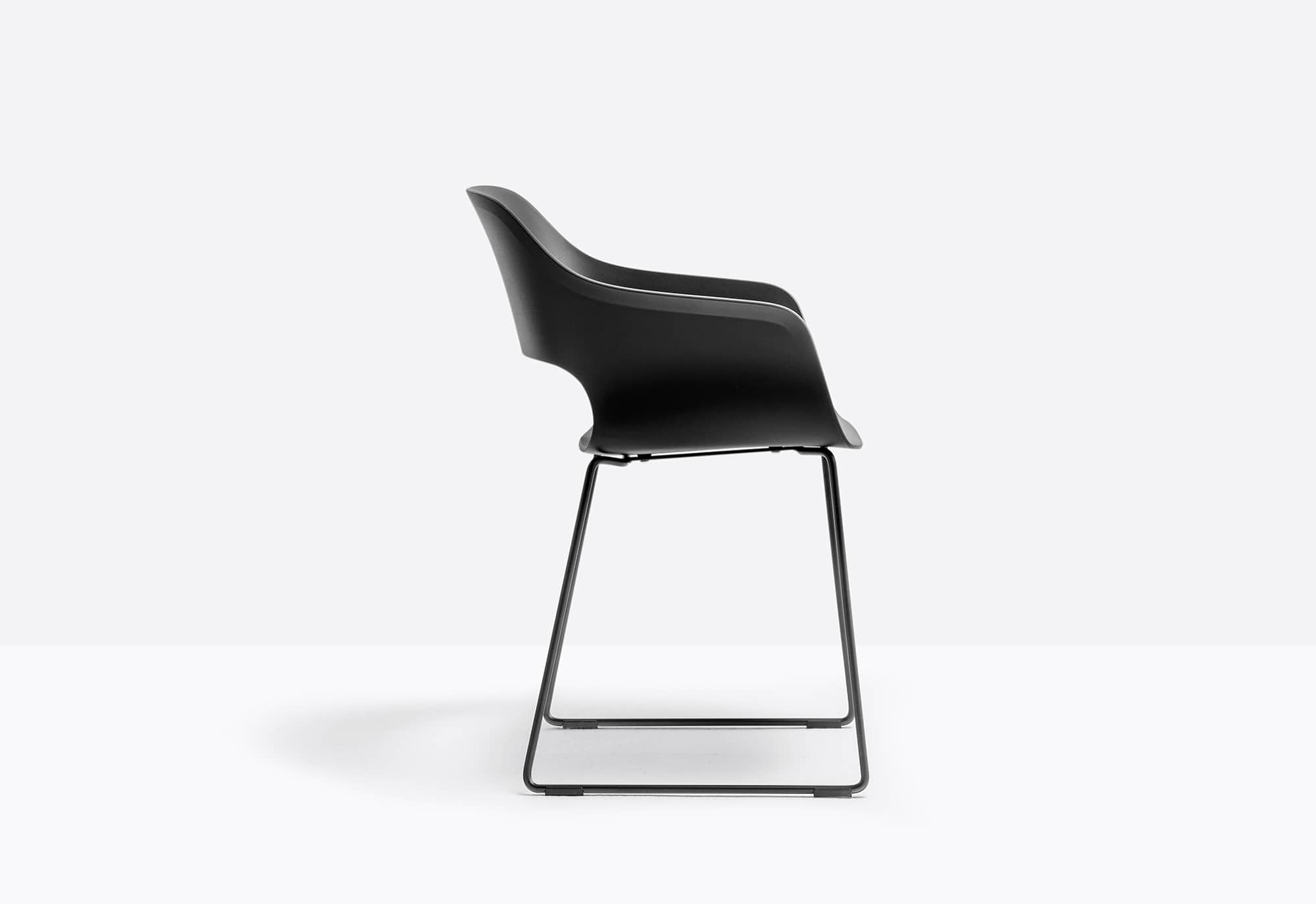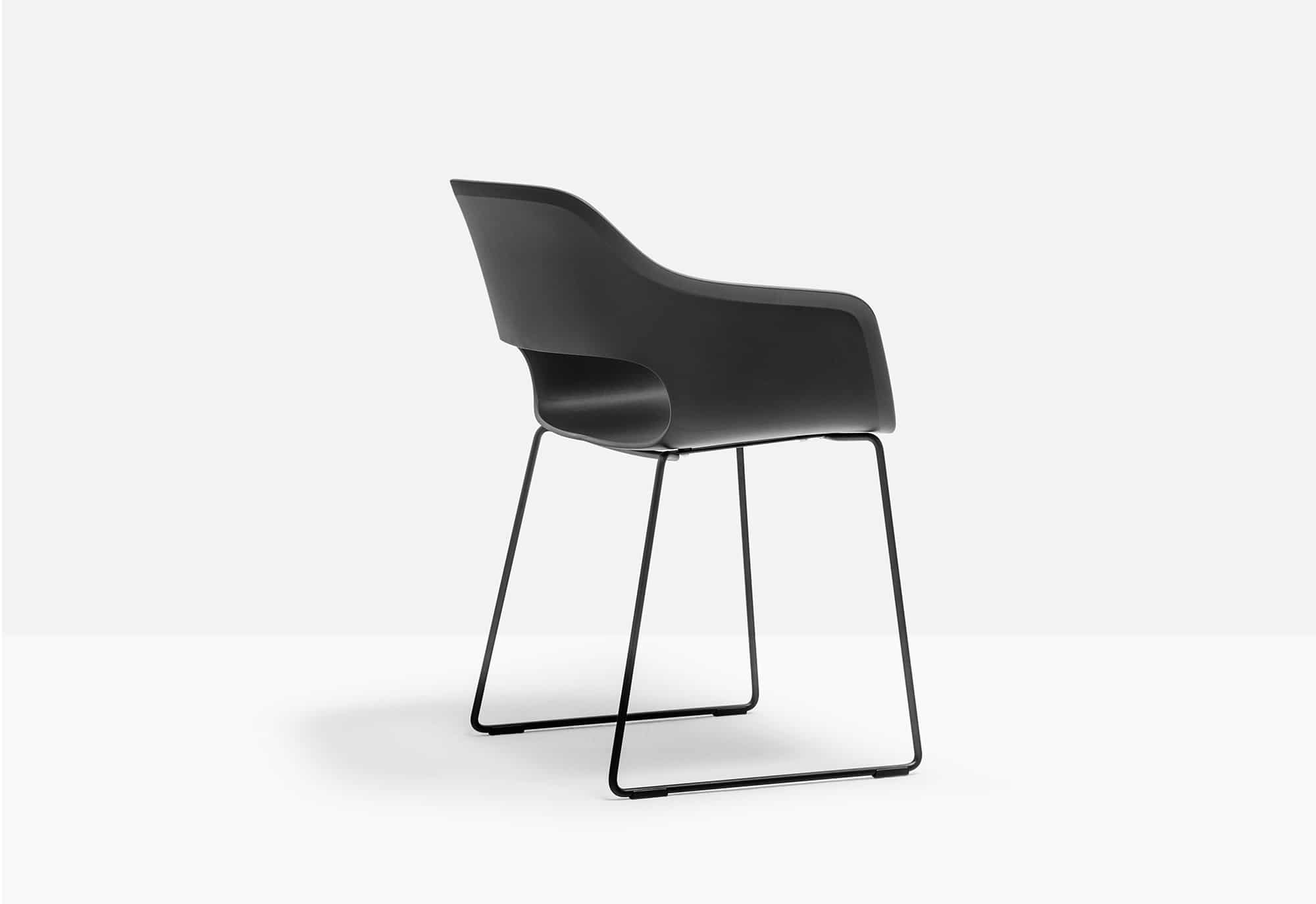Babila collection is able to move along tradition and innovation with great agility. The strenght of this collection is its simplicity and directness, to recall a timeless shape. Armchair with polypropylene shell and steel rod sled frame Ø11mm.