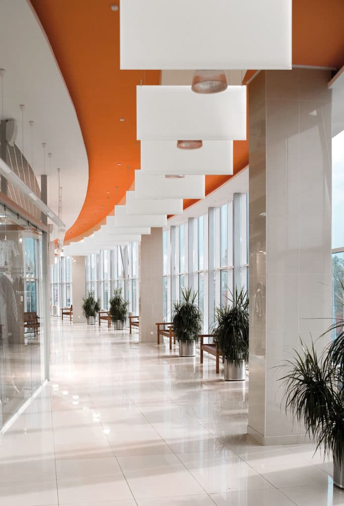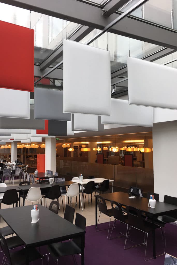 Baffle is a patented system designed to hang Snowsound sound-absorbing panels from the ceiling, showcasing its lightness and elegance. The adjustable height of the cables and the array of sizes and colours available make it possible to achieve compositions that can be personalized for aesthetics and sound. The patented joining system of the panel to the cables is completely invisible: a small cylindrical joint hides the anchoring system inside. Baffle anchors can be positioned along the upper edge of the panel, without particular limitations of space between the cables, in order to simplify ceiling installation.