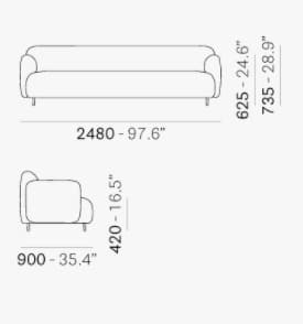 A three-seater sofa that, while maintaining the collection's friendly and reassuring design, adds further comfort to the seat, thanks to a combination of four different densities of polyurethane foam supported by elastic belts, offering greater softness for a domestic environment in which one feels truly pampered.  The sofa is incredibly versatile: not only is it available with or without armrests, but several seating modules can be positioned together.