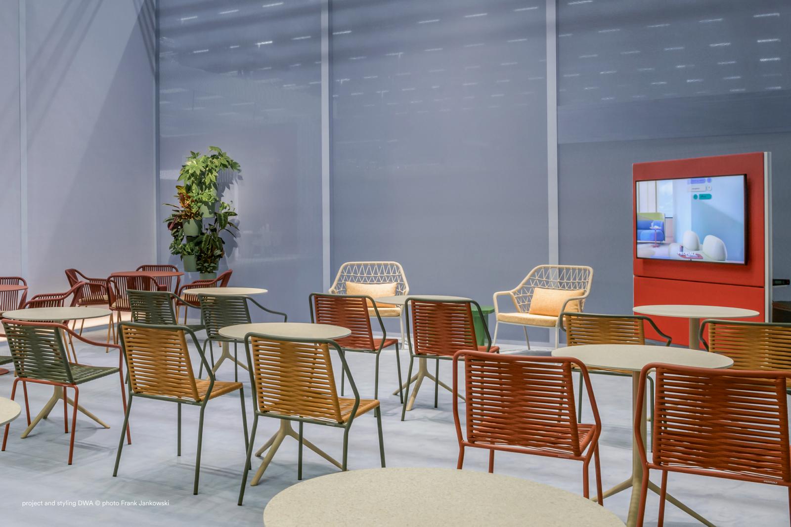 הכיסא Philia 3905, בעיצובו של Odoardo Fioravanti בשביל Pedrali, משלב את הקסם של שמחת החיים בסגנון "דולצ'ה ויטה" ואת הניקיון הקלאסי של עיצוב איטלקי. הוא מבוסס על שלד פלדה צינורי עמיד (Ø 20 מ"מ), עם ציפוי אבקה שמתאים בדיוק לחוויית חוץ זורמת המושב והמשענת עשויים מרצועות PVC אורכיות בעבודת יד, הנארגות אלכסונית במרכז ליציבות, גמישות ונוחות דינמית — מרקם שמבטיח רכות, אוורור עכשווי וסגנון מותאם אישית .