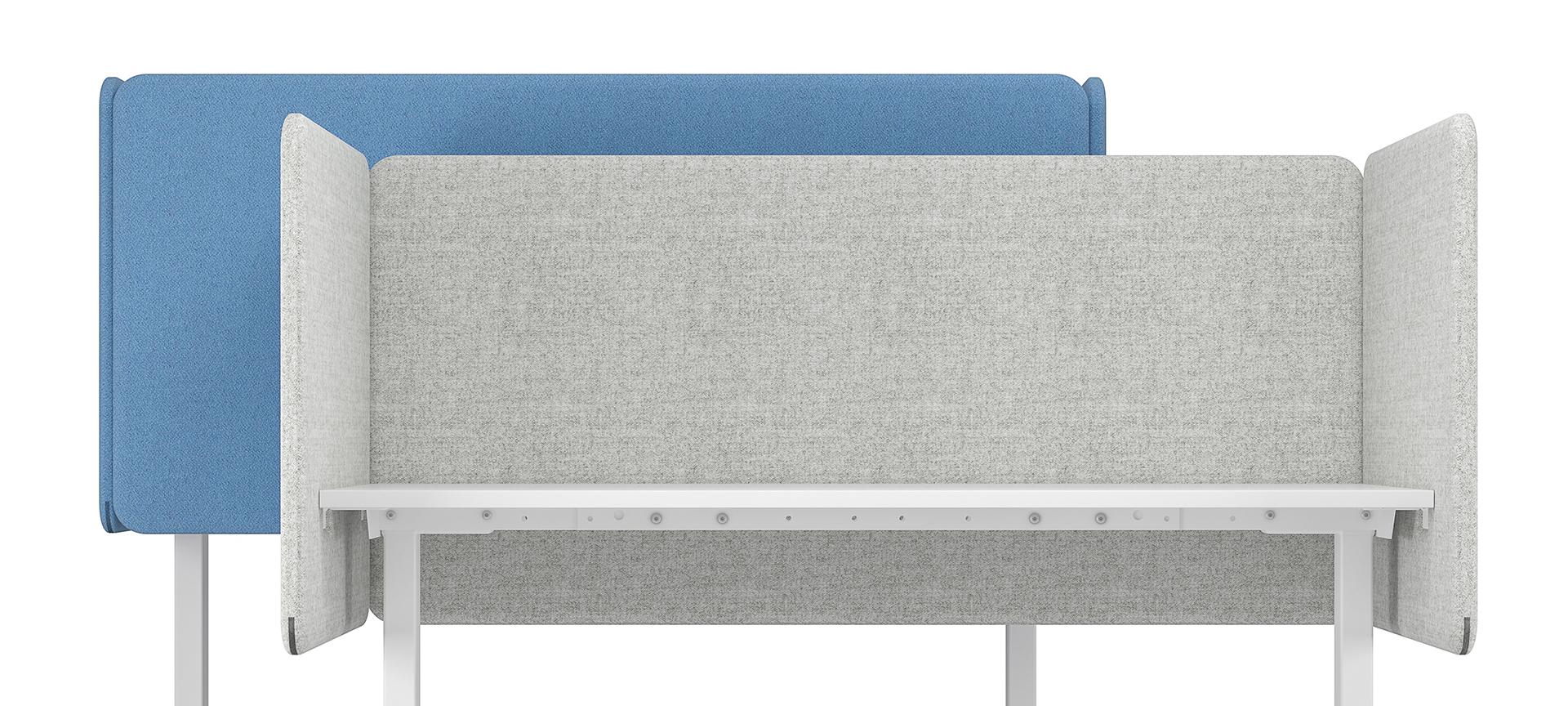 DESK 760 acoustic desk screens are ideal for those who need a partial acoustic shield from the most distracting sources of noise. These panels have a class C sound absorption rating. Panels designed for acoustic comfort are filled with sound-absorbing material and can be upholstered with a fabric of your choice. Thanks to a wide range of colour options and functionality, these panels work well in various spaces.