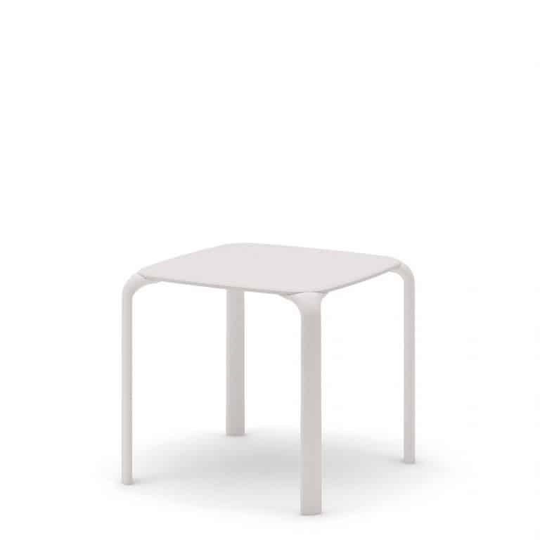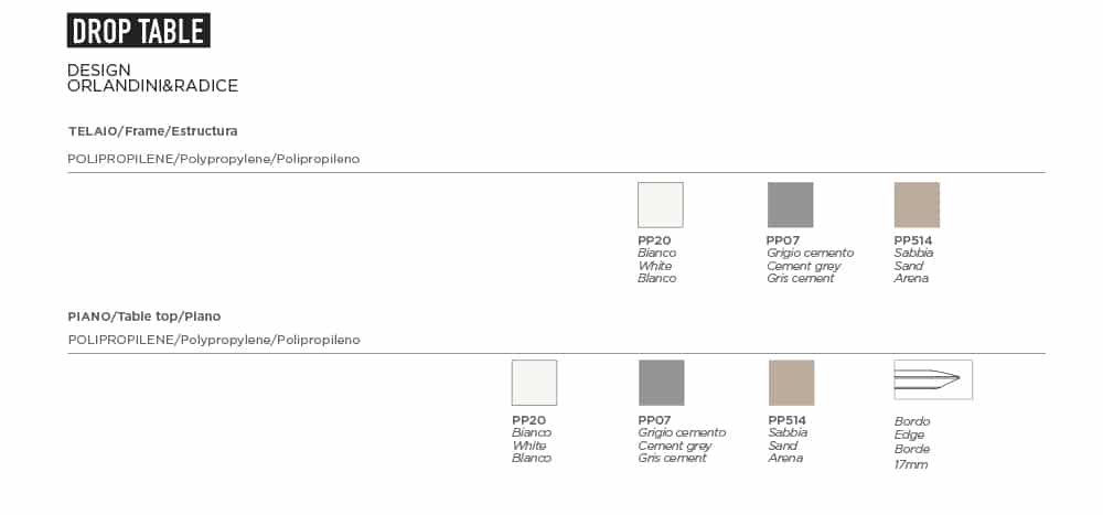 Made of polypropylene reinforced with glass fibre with co-injection of a second material, the Drop table is available with both round or square tabletops.