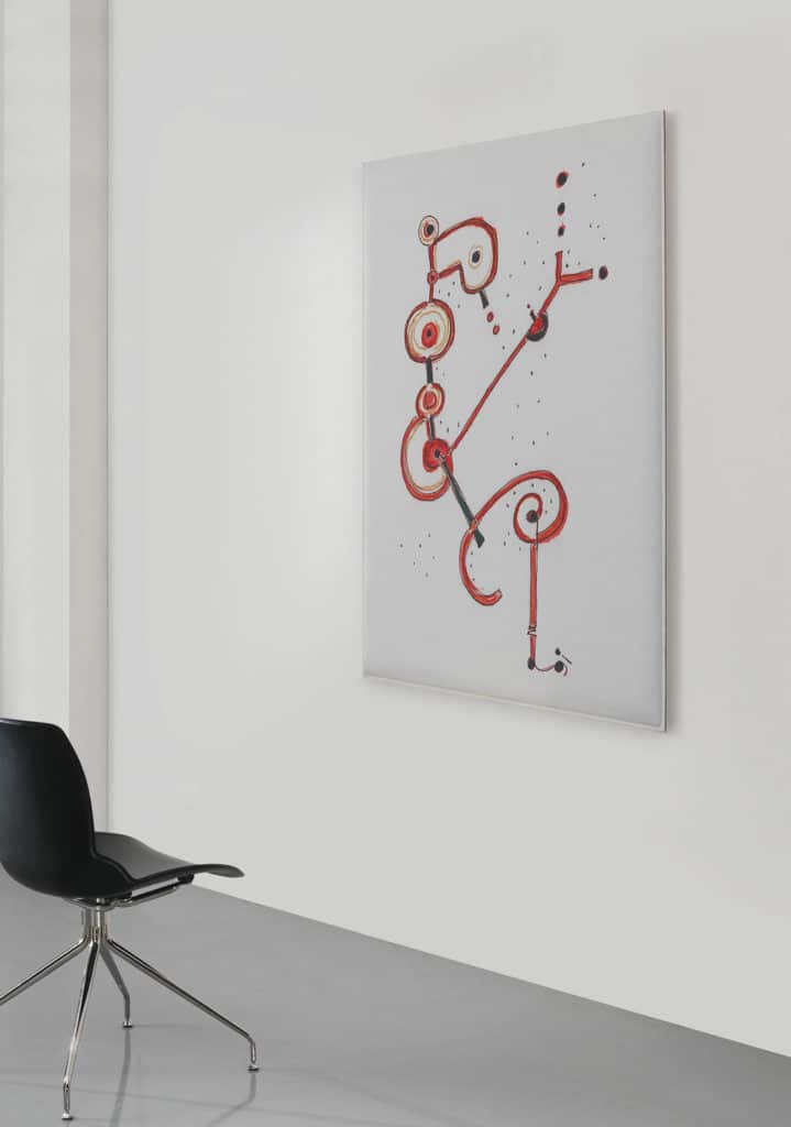 FOR A GIGANTISM OF DRAWING Snowsound Art is a project by Caimi that has as its objective a journey to discover new ways to make ART and DESIGN dialogue. A way of seeing art, not only as a unique, non-repeatable creation, but as a “beauty” that can be reproduced on serial objects. Art not only to be contemplated, art to be enjoyed. The journey begins with a series of Snowsound Art sound-absorbing panels that become “canvases” on which a series of drawings by Gillo Dorfles are reproduced. Series of Snowsound Art sound-absorbing panels on which a series of drawings by Gillo Dorfles are reproduced, works ranging from 1937 to 2017.