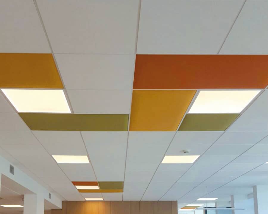 Snowsound In panels, measuring 59×59 cm or 59×119 cm, can be inserted in suspended ceilings with profiles and supports that can hold them. The panels come with the CE mark according to the harmonised technical specification EN 13964 for use as a suspended ceiling.