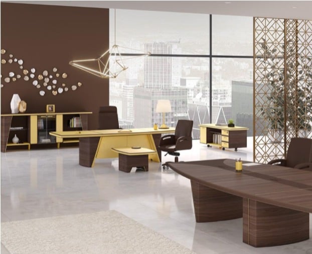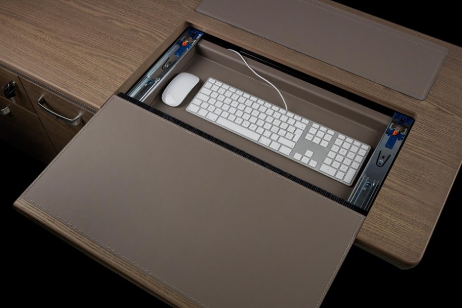 Whether you prefer Avantgarde or Luxury, with iSixty you can choose your style! The office of the future is already here, you can see it, and it embodies and satisfies all your needs. What is hidden is its high-tech heart, because technology is present, but unnoticeable. Avantgarde is the enterprising side of iSisxty: the corda, tabacco or silicio dyed ash wood highlights the curved lines with prominent grains and a matt finish that is pleasant to the touch, and they perfectly match the thick leather upholstery with its sophisticated character in shades of black, dove grey and cream. Luxury is the regal side of iSixty: an aesthetic choice that projects into the future, with furnishing, seating systems, sofas, accessories and technology that are real jewels. Surfaces covered in silver or gold leather capture gazes, and the wood is embellished by refined chrome-plated or 24-carat gold-plated flush bands.
