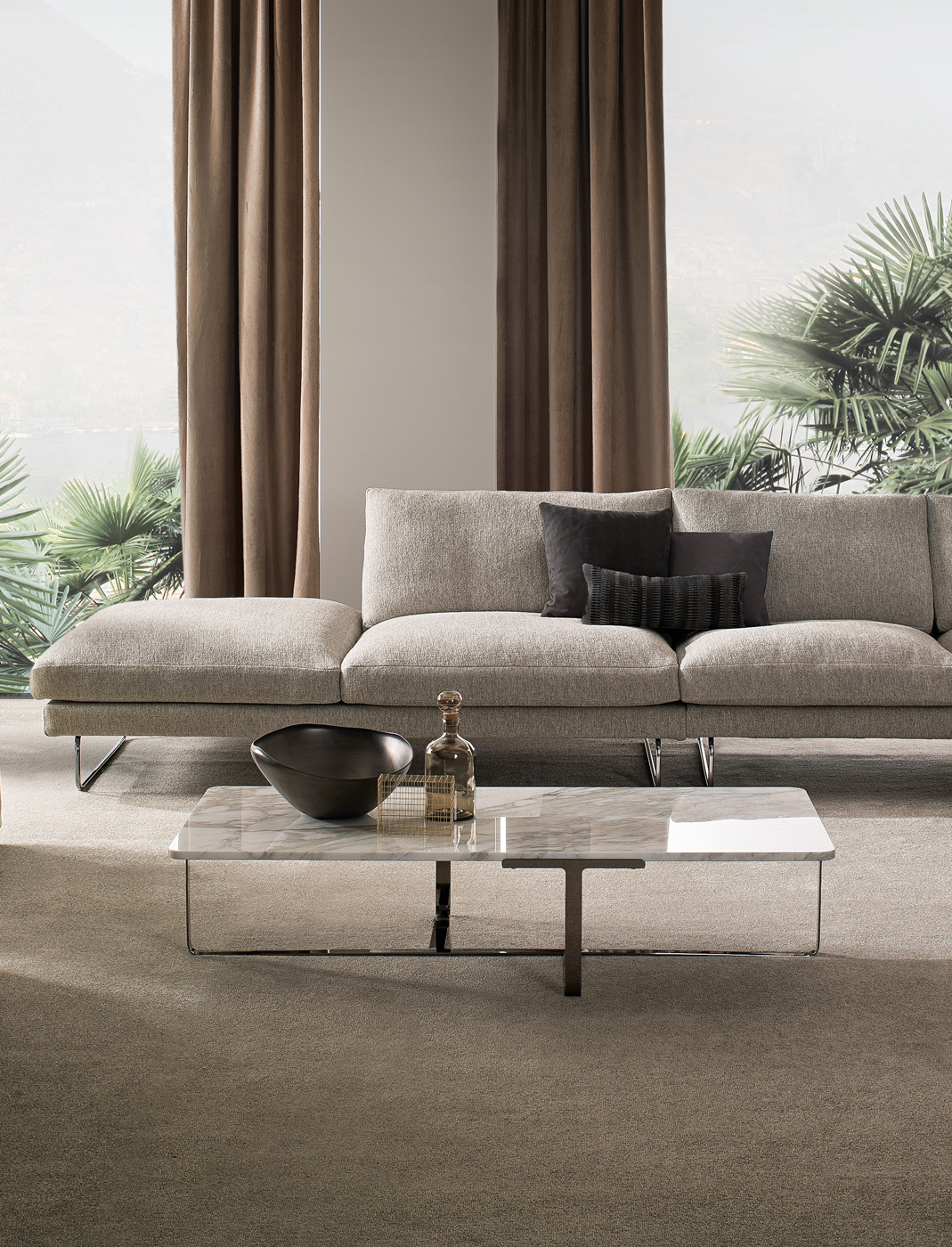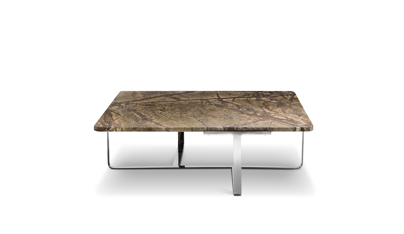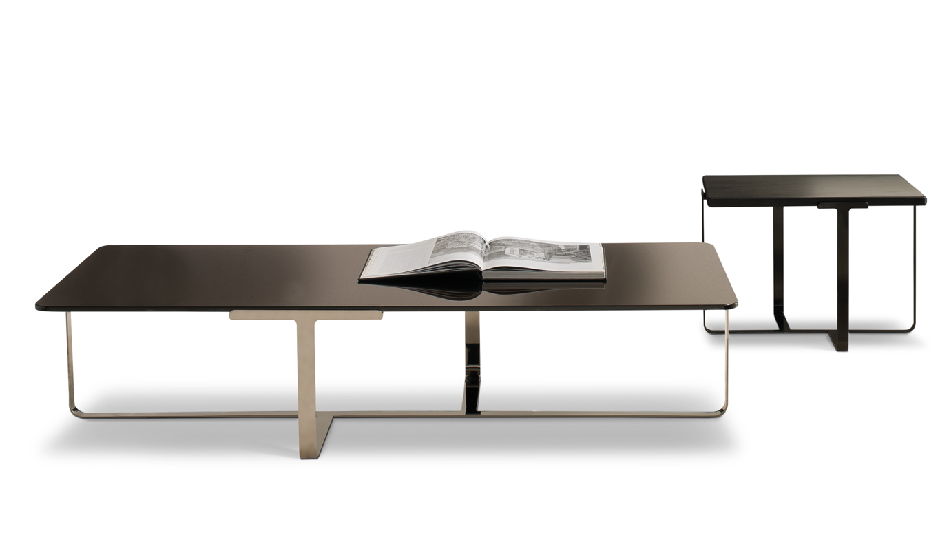 שולחן קפה מדגם Joshua, מגיע בארבעה גדלים וגבהים שונים, מצויד במסגרת פרופיל מפלדה שטוחה מעוקלת. המשטחים זמינים בזכוכית בגוון ברונזה עם גימור אלומיניום בצד התחתון, בשיש, בעור רך או בעור אוכף.