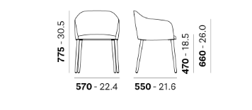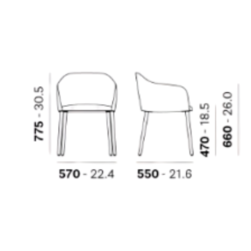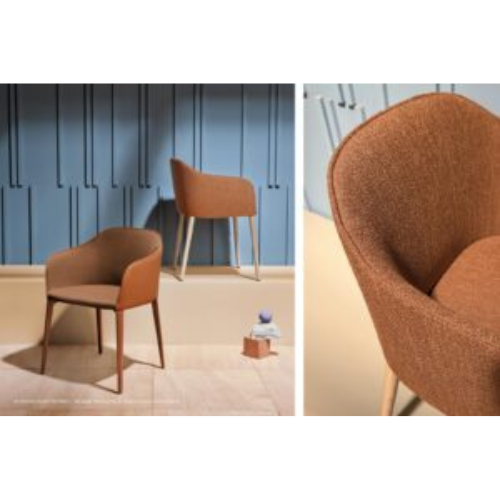 מושב הכסא המרופד עשוי קצף פוליאוריתן גמיש בשילוב רצועות אלסטיות, המספקות תמיכה אידיאלית ותחושת רכות. משענת הגב גמישה המעניקה חוויית ישיבה נעימה. רגליים עשויות עץ מלא (אש) המוסיפות חמימות טבעית ומראה קלאסי-מודרני. מגיע במגוון רחב של בדים וצבעים ומאפשר ליצור שילובים מונוכרומטיים או דו-גווניים בין החלק הפנימי והחיצוני של הכסא.