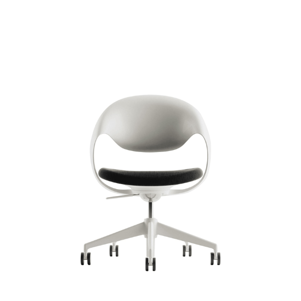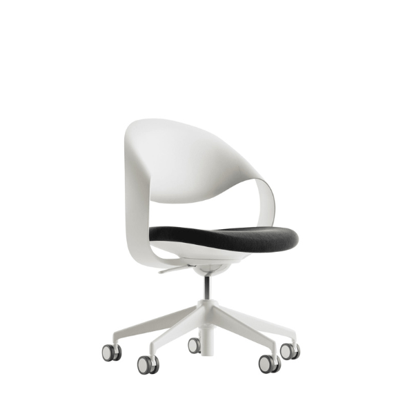 כיסא LOOP הלבן, בעיצובו של מרטין באלנדאט, משלב אסתטיקה מודרנית עם פונקציונליות גבוהה. משענת עוטפת בעלת קווי מתאר אורגניים המתמזגים מתחת למושב, יוצרת מראה ייחודי ומספקת תמיכה מרבית. הכסא מצויד בבסיס עם חמישה גלגלי סיליקון לתנועה שקטה וחלקה, מנגנון הטיה סינכרוני לכוונון זווית הגב והמושב. הודות לטכנולוגיית יציקה ייחודית, הכסא חזק וקל משקל, מתאים לישיבה ממושכת. LOOP הלבן אידיאלי לחדרי ישיבות, חללי עבודה שיתופיים, משרדים ומרכזים חינוכיים. מגיע מוכן לשימוש ללא צורך בהרכבה. זמין בצבע מסגרת לבנה או שחורה.