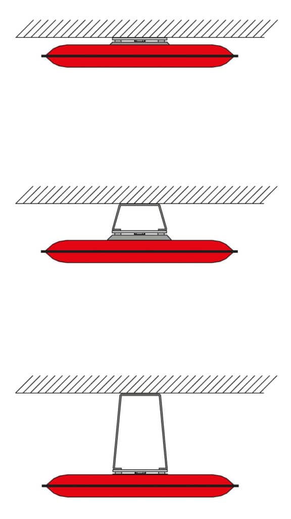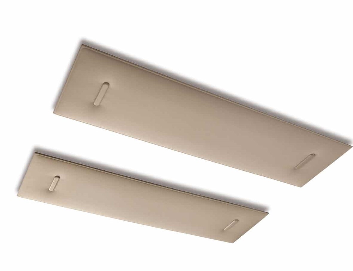 The Mitesco Ceiling sound absorbing panel, made with Snowsound technology, is equipped with a leveling profile and attachments that allow direct fixing to the ceiling or to steel spacers that keep the panel detached from the ceiling to optimize its acoustic performance. The front covers of the attachments are made of metal in the same colour as the panel.