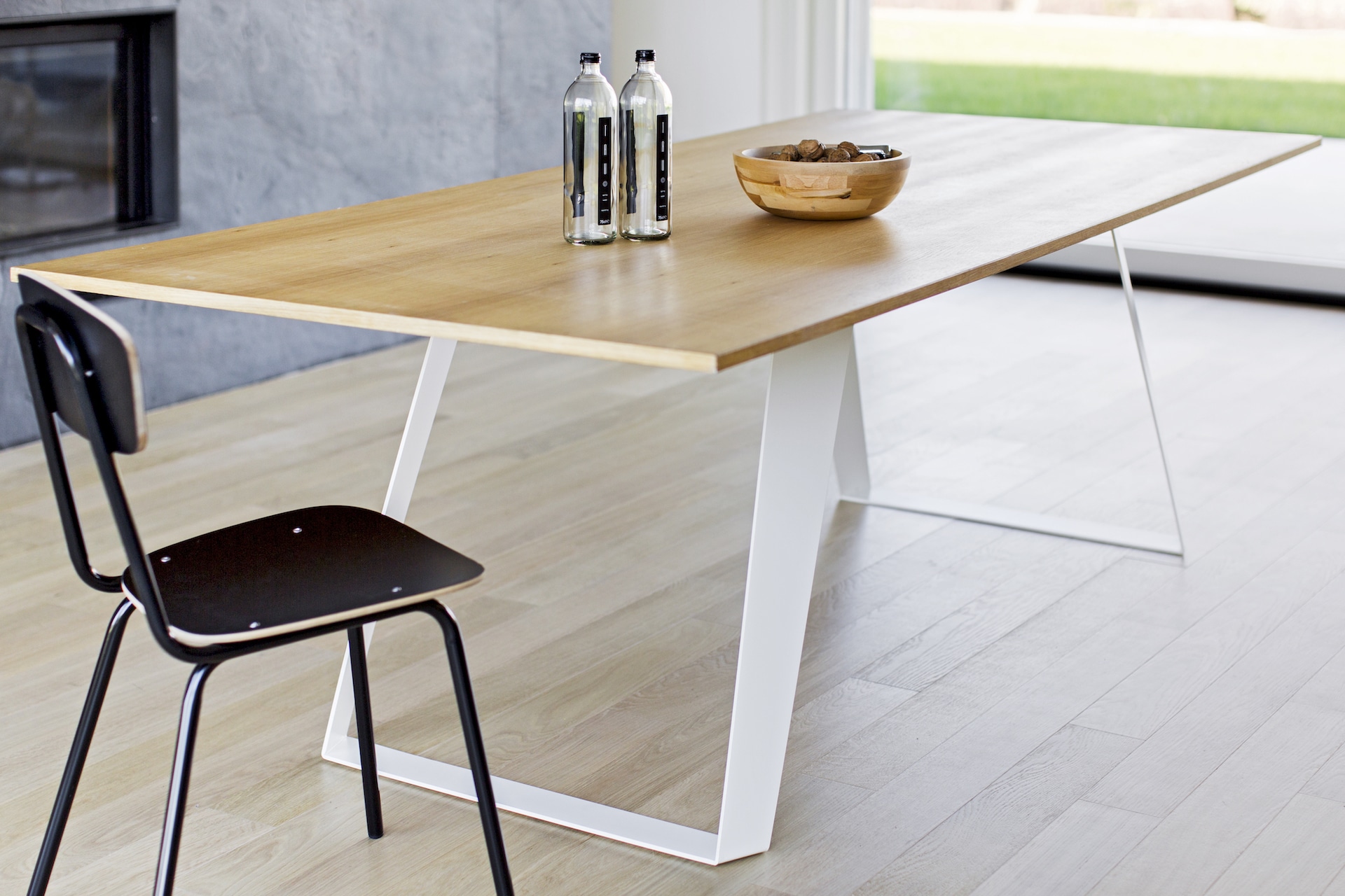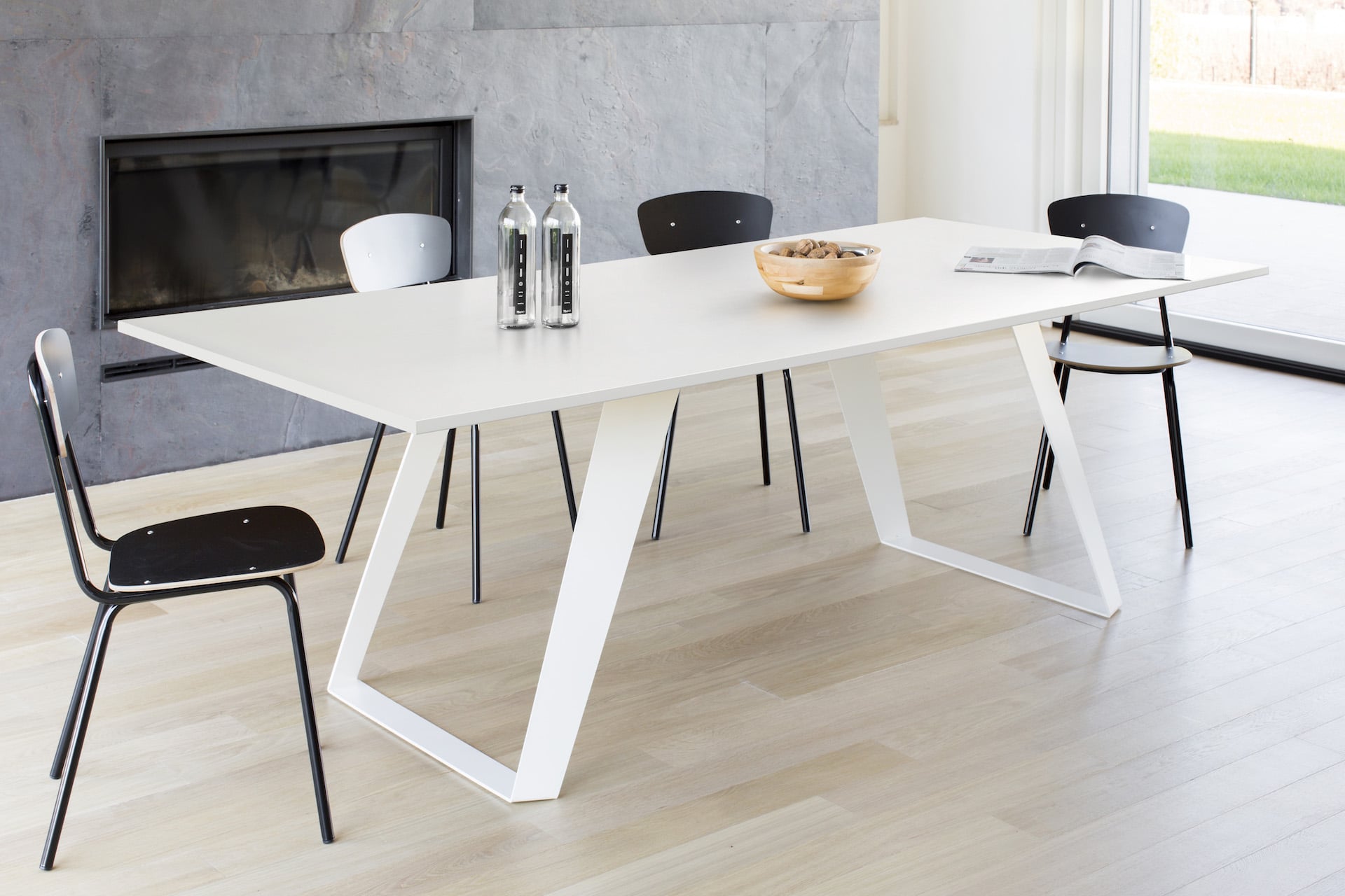 Morgan is a table designed for both home and office environments. The careful study of the inclinations of the metal sheet, which characterizes the three-dimensional design, gives the table stability and timeless charm.