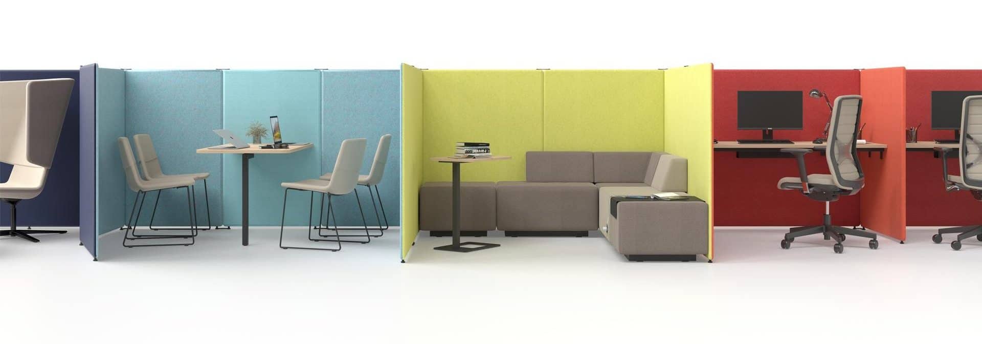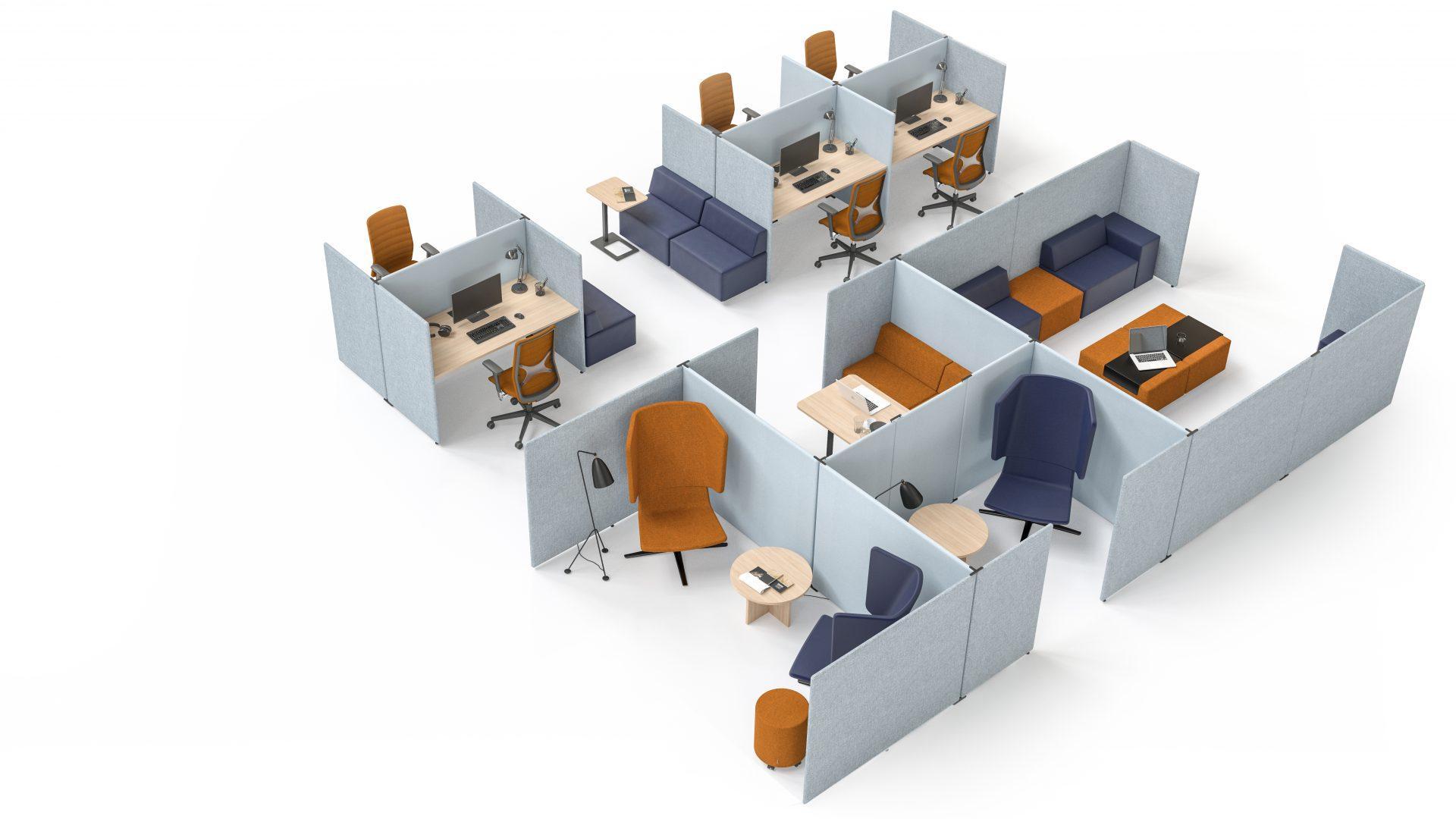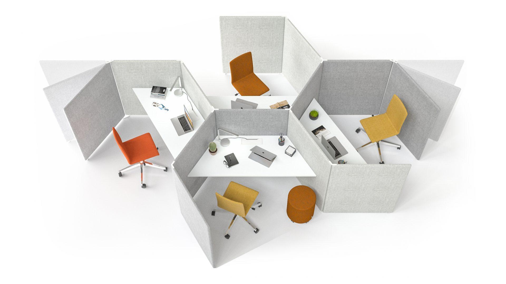 MY SPACE is a universal modular system with excellent acoustic properties designed to shape unique office spaces. This system is the ideal solution for agile, activity-based, and open-plan offices. A wide range of applications and configurations of these modular acoustic screens lets you easily adapt the furniture to various office planning needs and working situations. From private mini-rooms for concentration to collaboration areas for teamwork, this system provides a comfortable workplace, allows you to distance yourself from ambient noise, and opens up new “office-within-office” possibilities. A variety of acoustic screen joints allows you to build different structures and gives freedom to form almost any desired workspace.