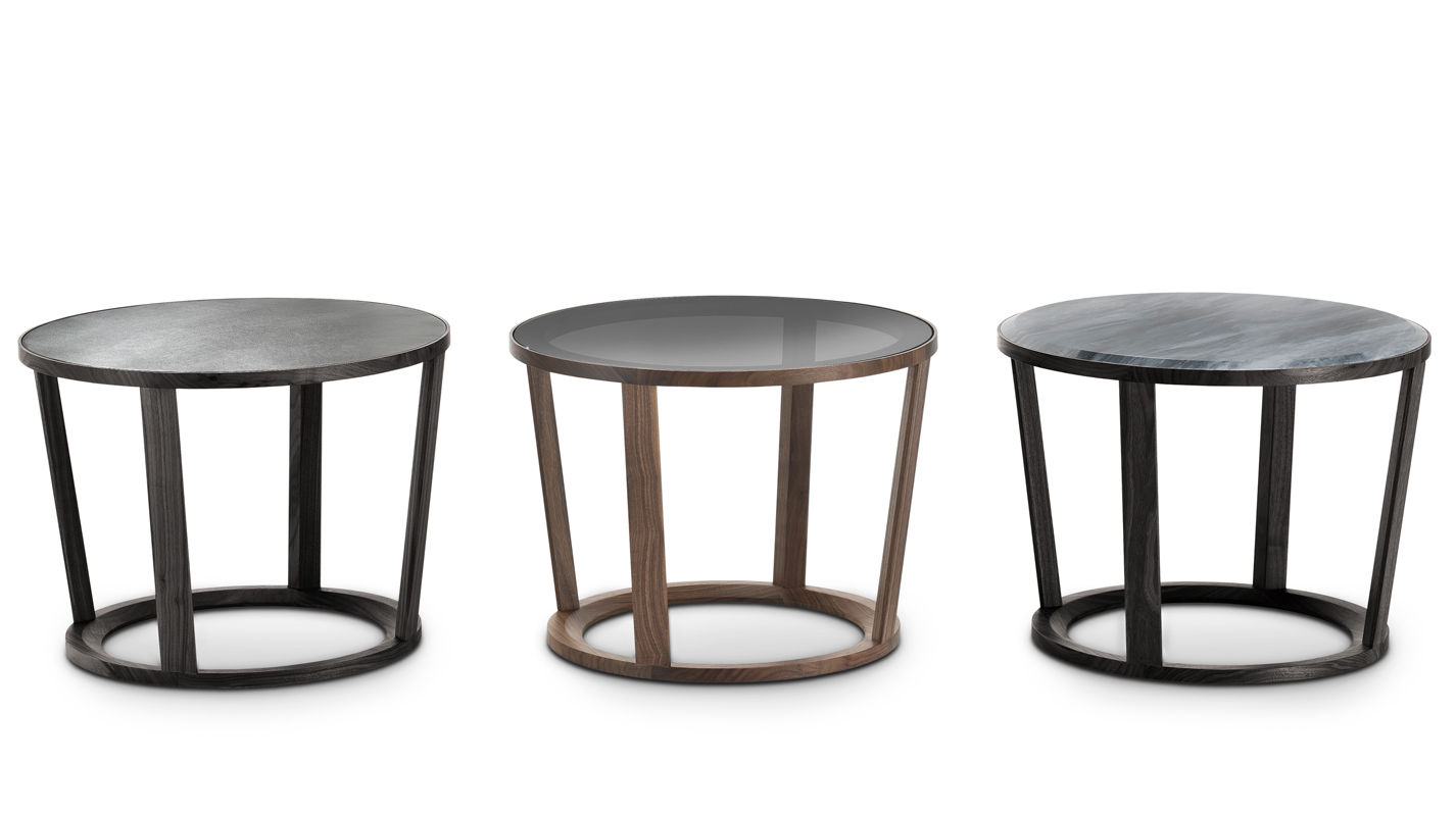 מסגרת השולחן עשויה מעץ אגוז שחור מלא או עץ אש מוכתם בגרפיט. המשטחים זמינים ב: