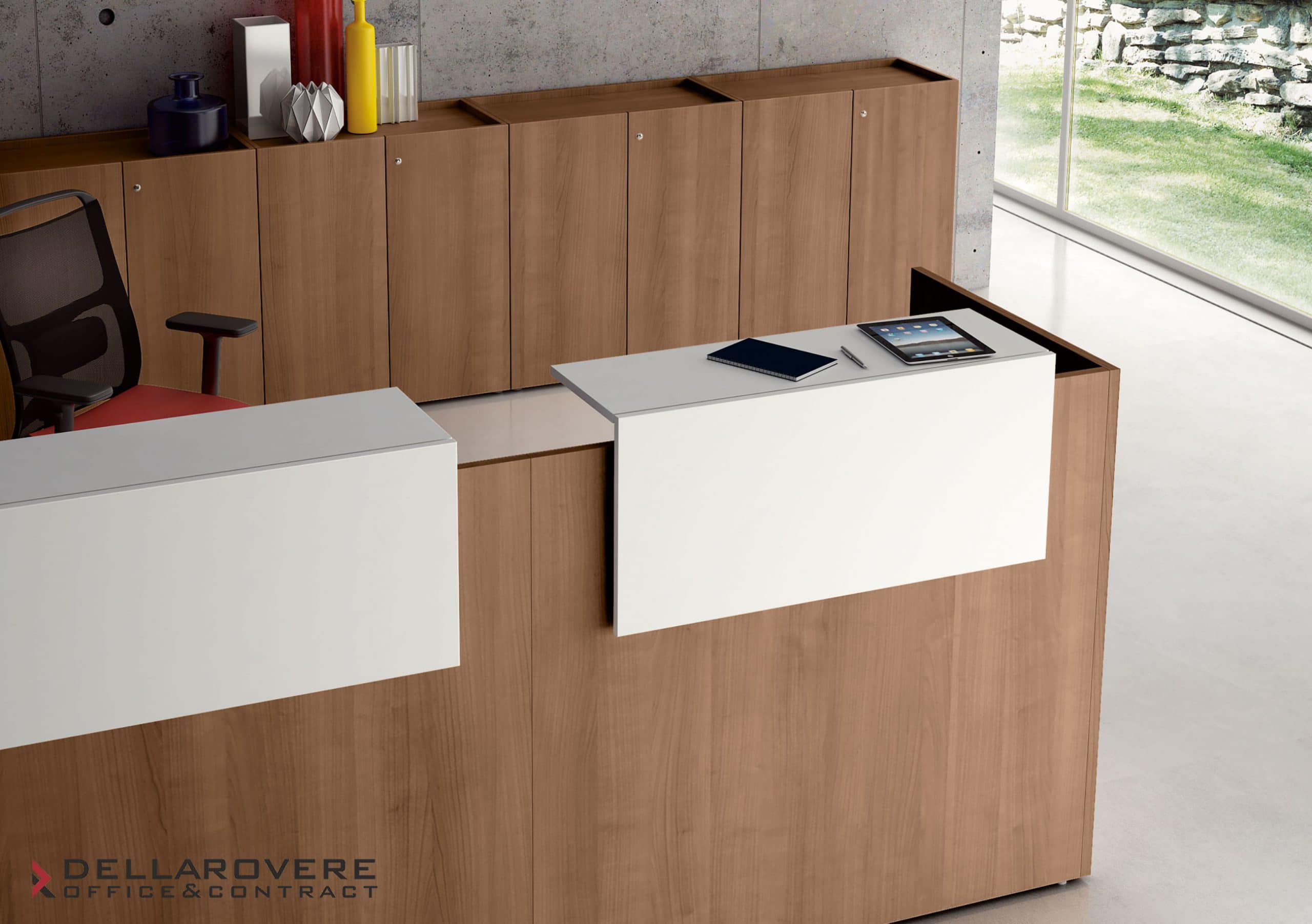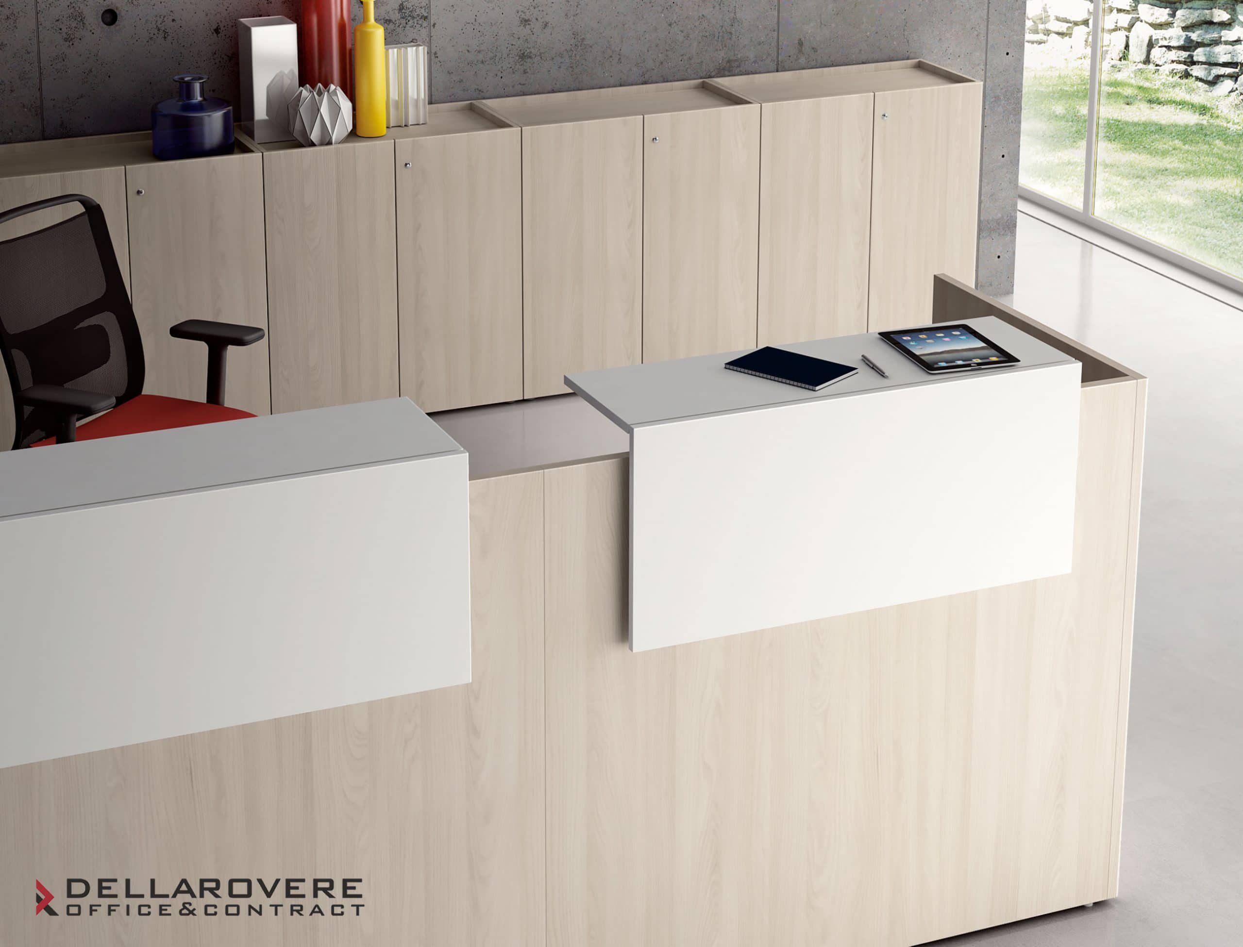 The “welcome” panels in metal are available in aluminium (AL1) and white (BI) colours. “Welcome” panels in metal (with length of 80 cm) can be connected to each other through melamine tops (with length of 26 –
