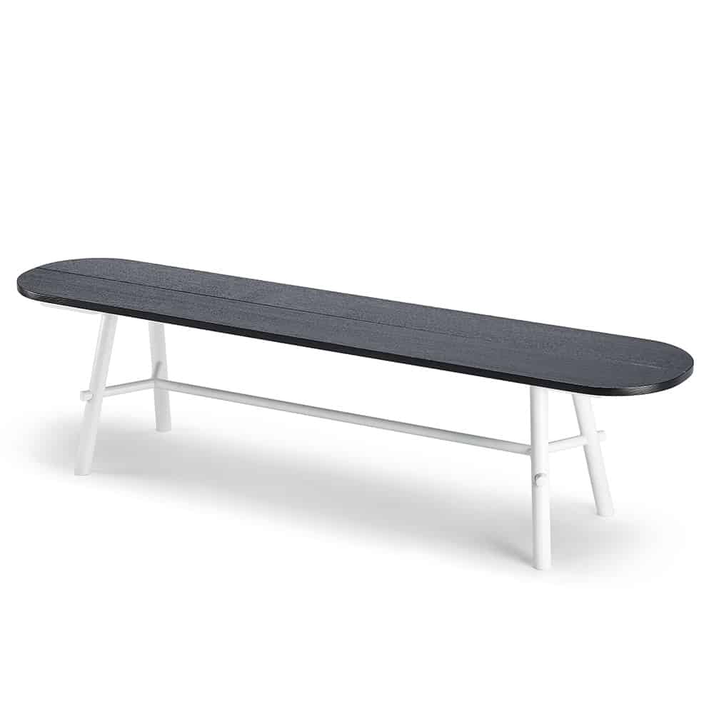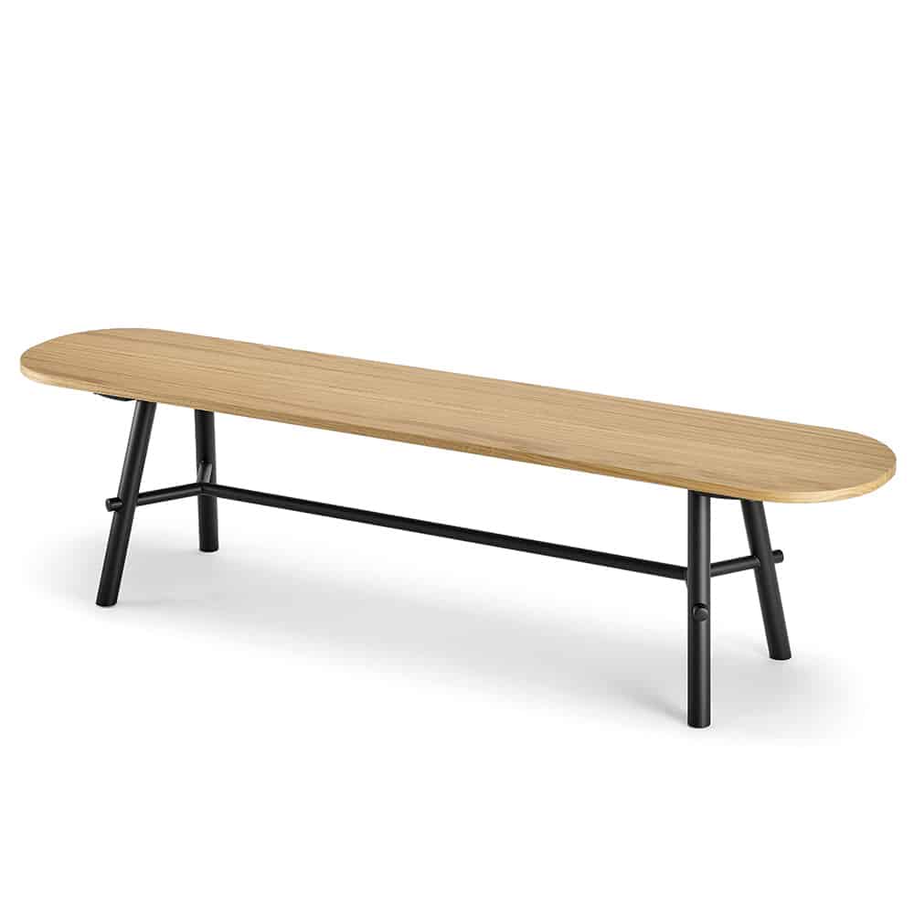 Record Bench, like the rest of the Record family, was born from an idea of crossed lines supporting a panel. The bench is made up of a simple structure in painted steel or wood, and a seat panel that can be made in different materials, both for outdoor and indoor; the version with upholstered panel completes the range of finishes. The simplicity and harmony of the shapes that characterize it make Record Bench an extremely versatile piece of furniture.