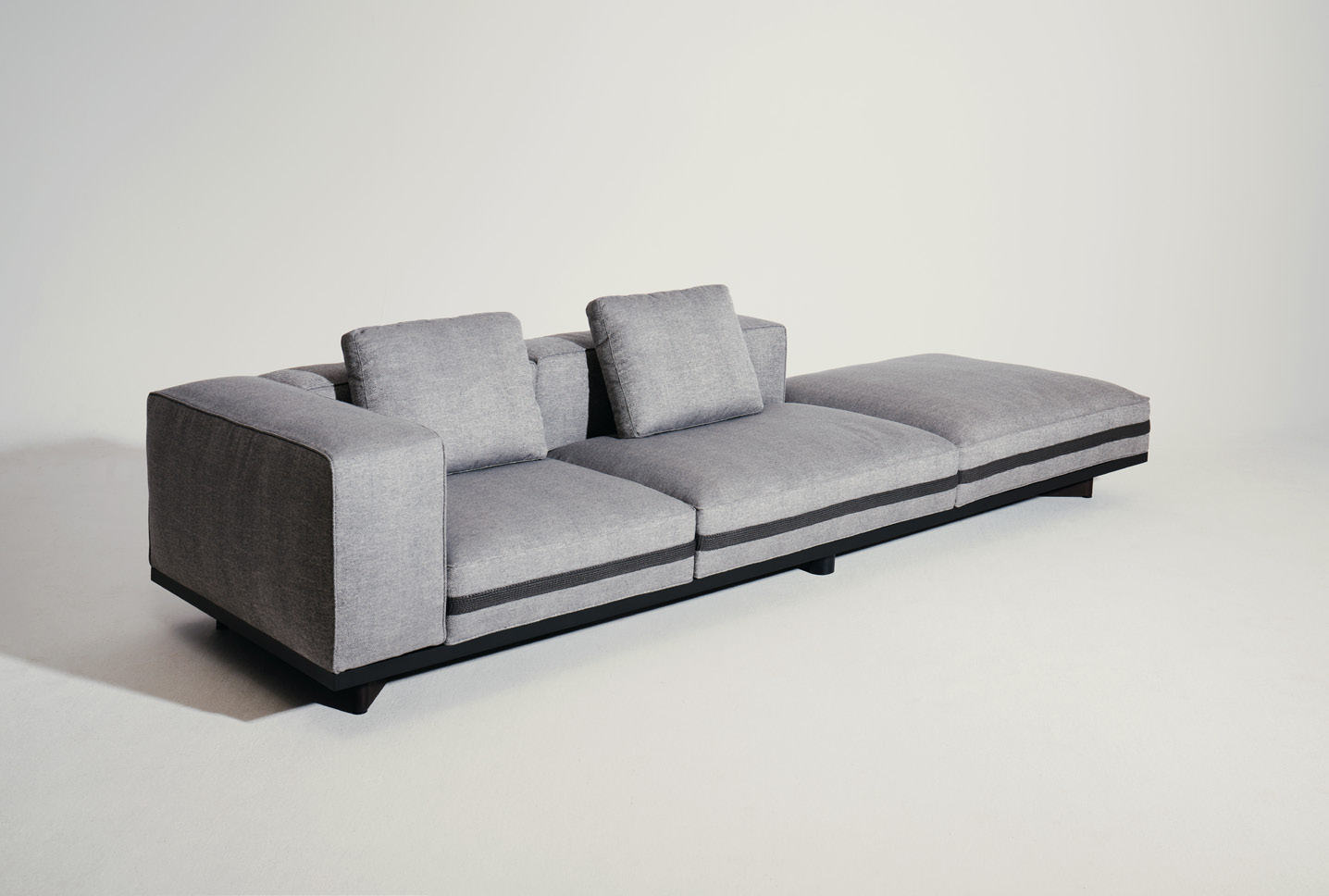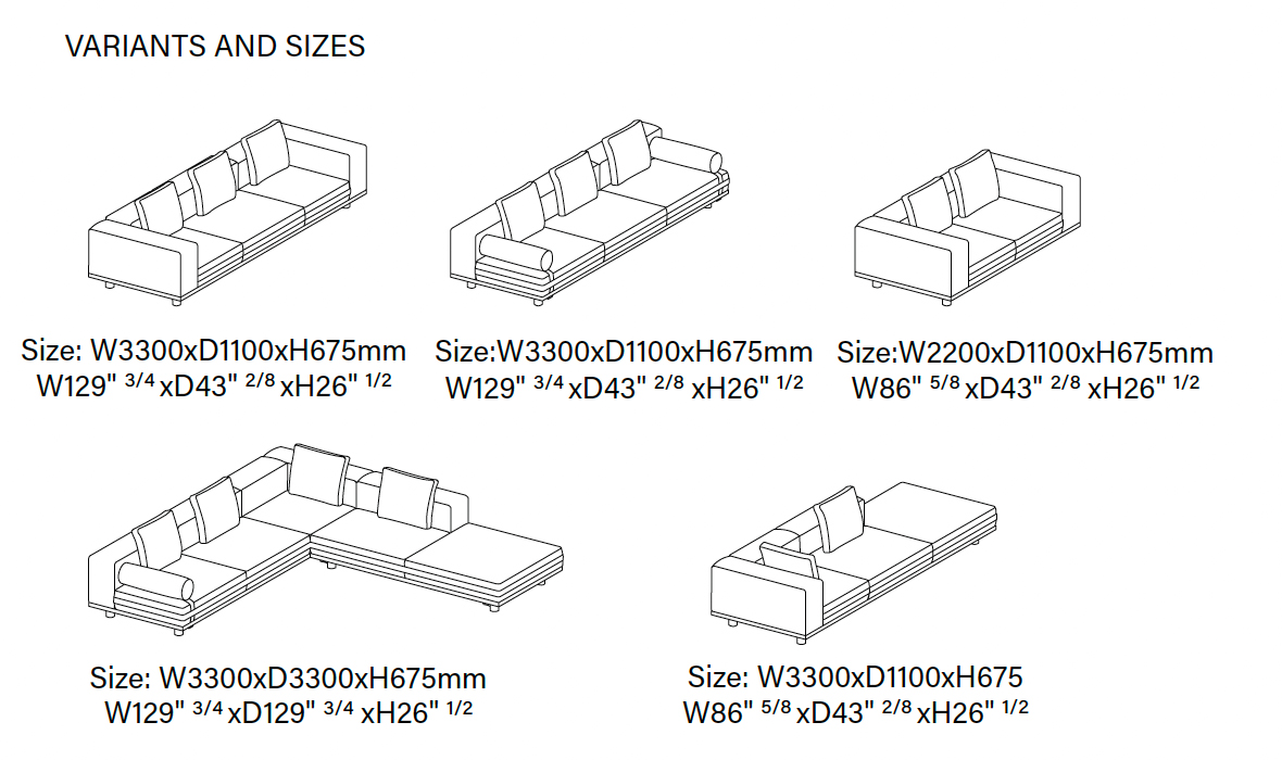 ספה מודולרית להרכבה אישית מתאימה לשימוש פנימי וחיצוני. בסיס יציב עם רצועות טקסטיל מעוצבות. כריות מושב וגב ניתנות להחלפה. ריפוד זמין במבחר בדים ועורות. עיצוב עכשווי של לוקה ניקייטו