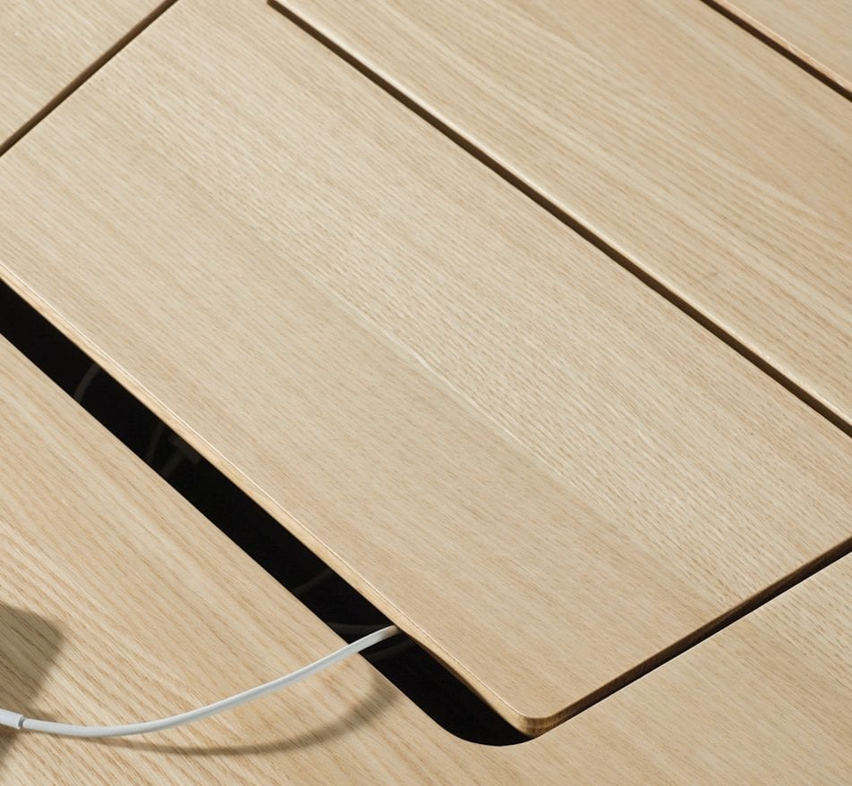 Seamless is presented to the user as an integrated lid which is a continuation of the top. Using high quality commercial grade hinges for durability and longevity, and providing large capacity cable storage to keep cables off the worktop, the Seamless Power + Data module is the ultimate power and data solution.
