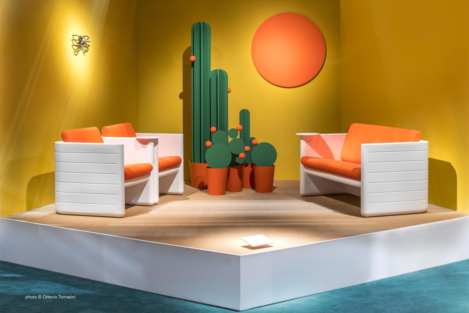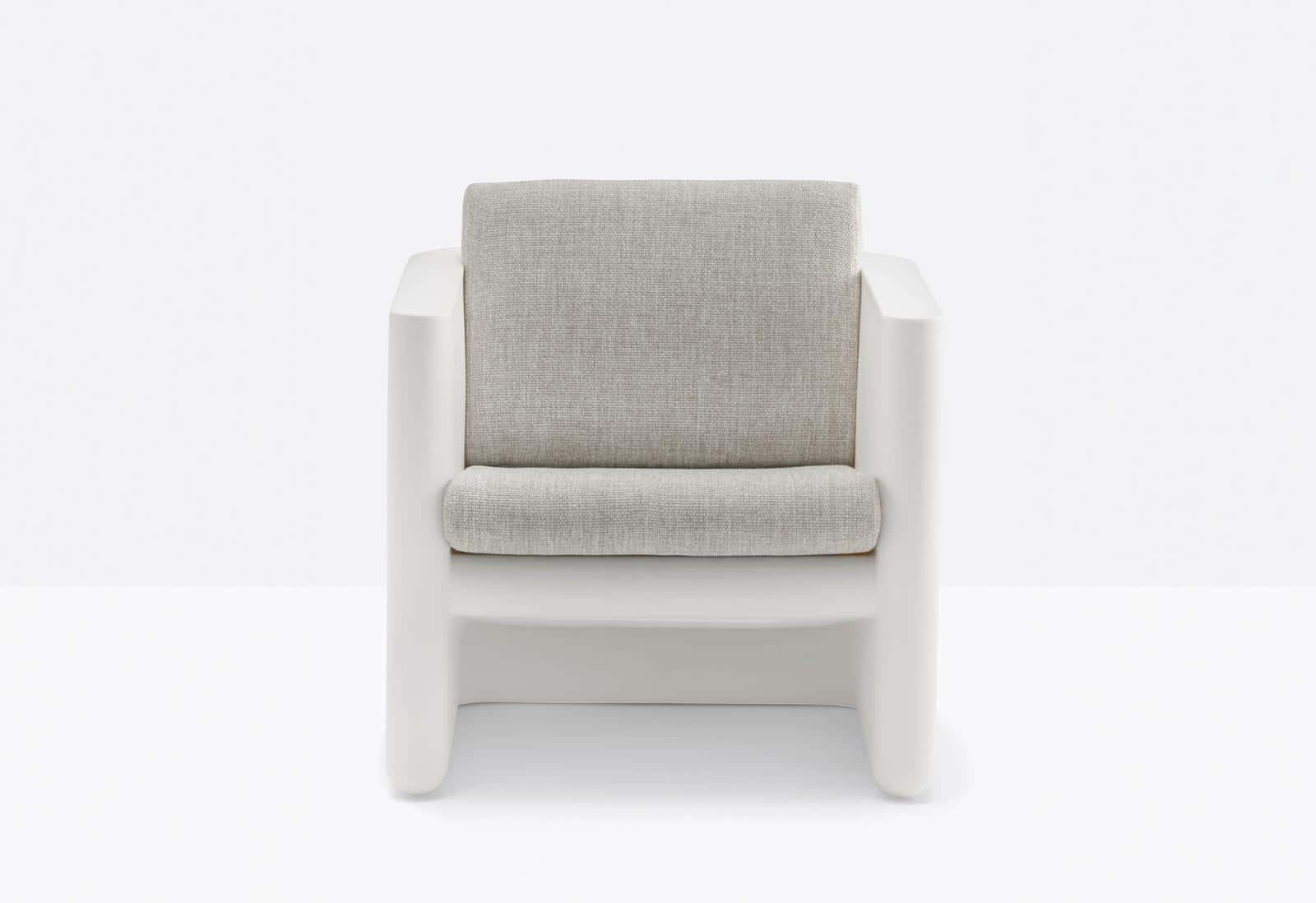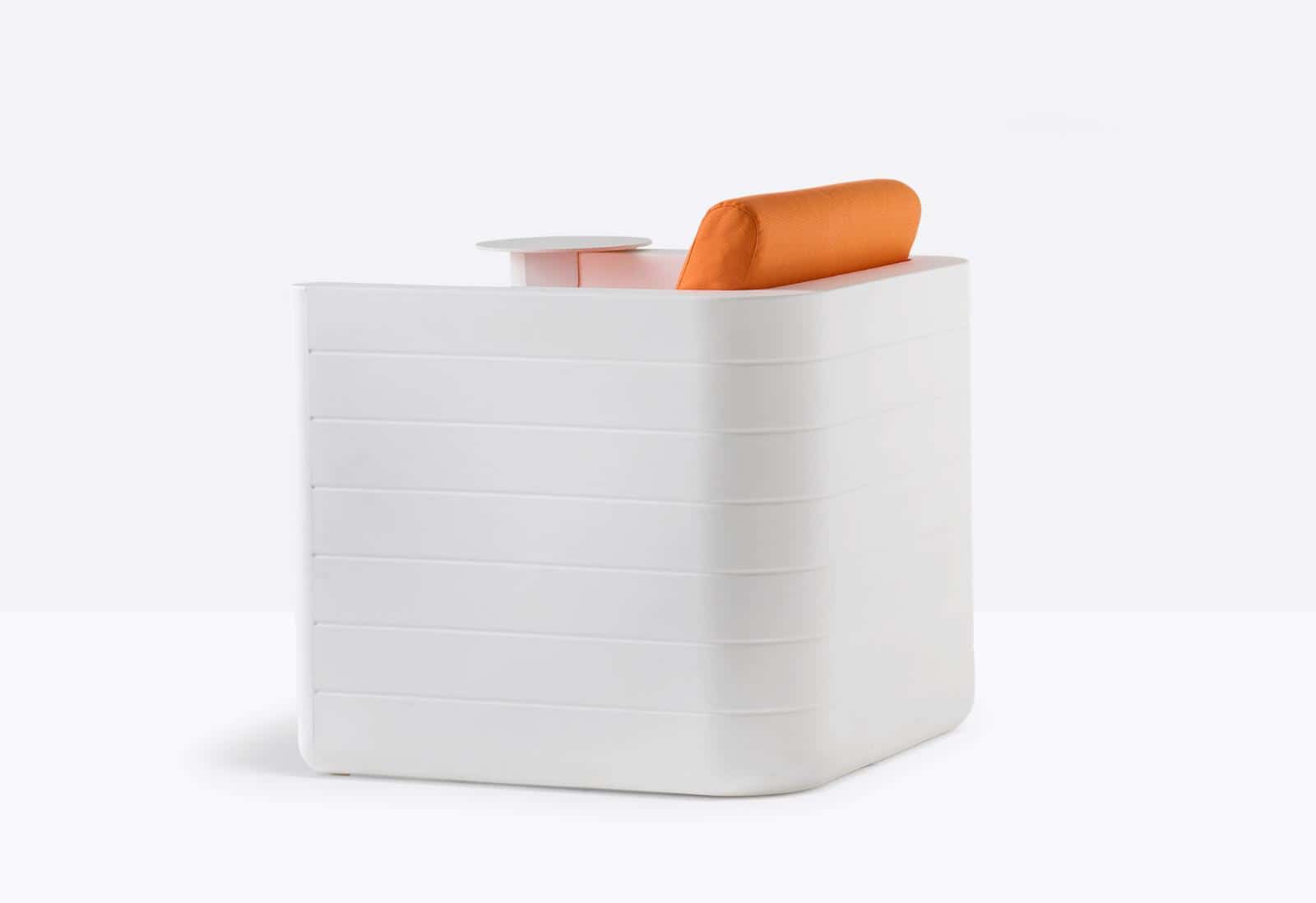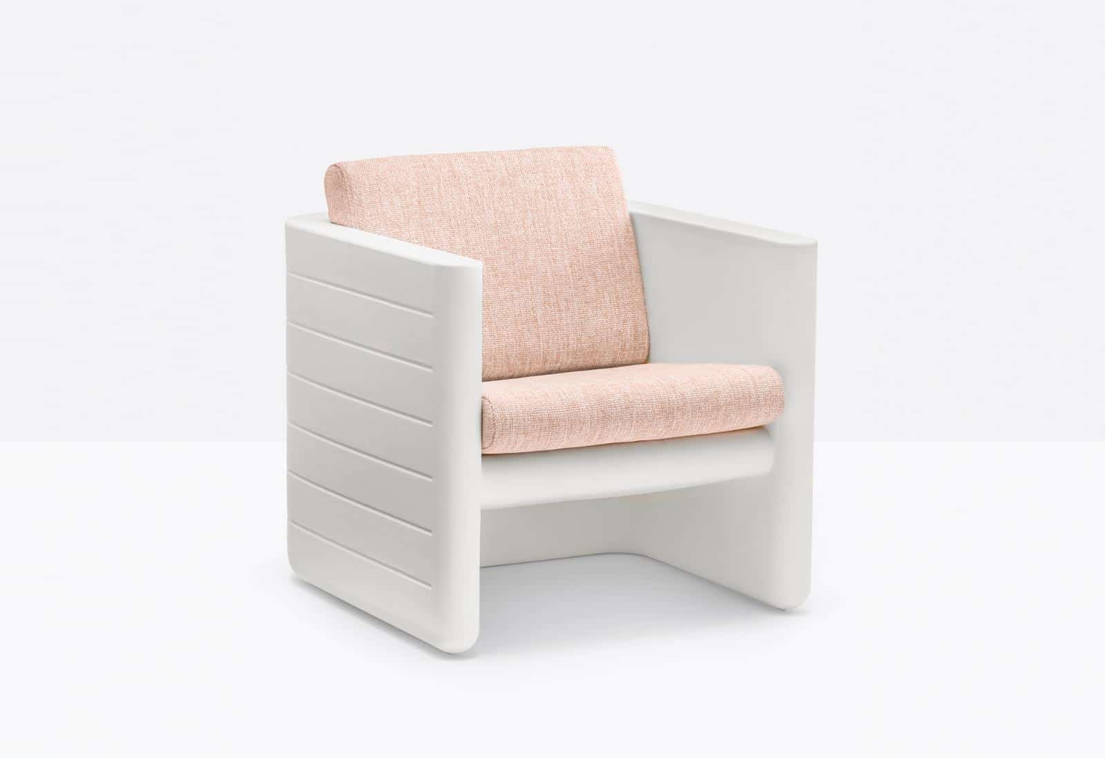 Sunset is a collection of lounge modular seating. Sunset two-seat sofa is perfect to enjoy sunny atmospheres. The squared volume in polyethylene embraces the wide seat while horizontal lines run along the outer profile. Available the two-seat cushion upholstered with water resistant fabric.