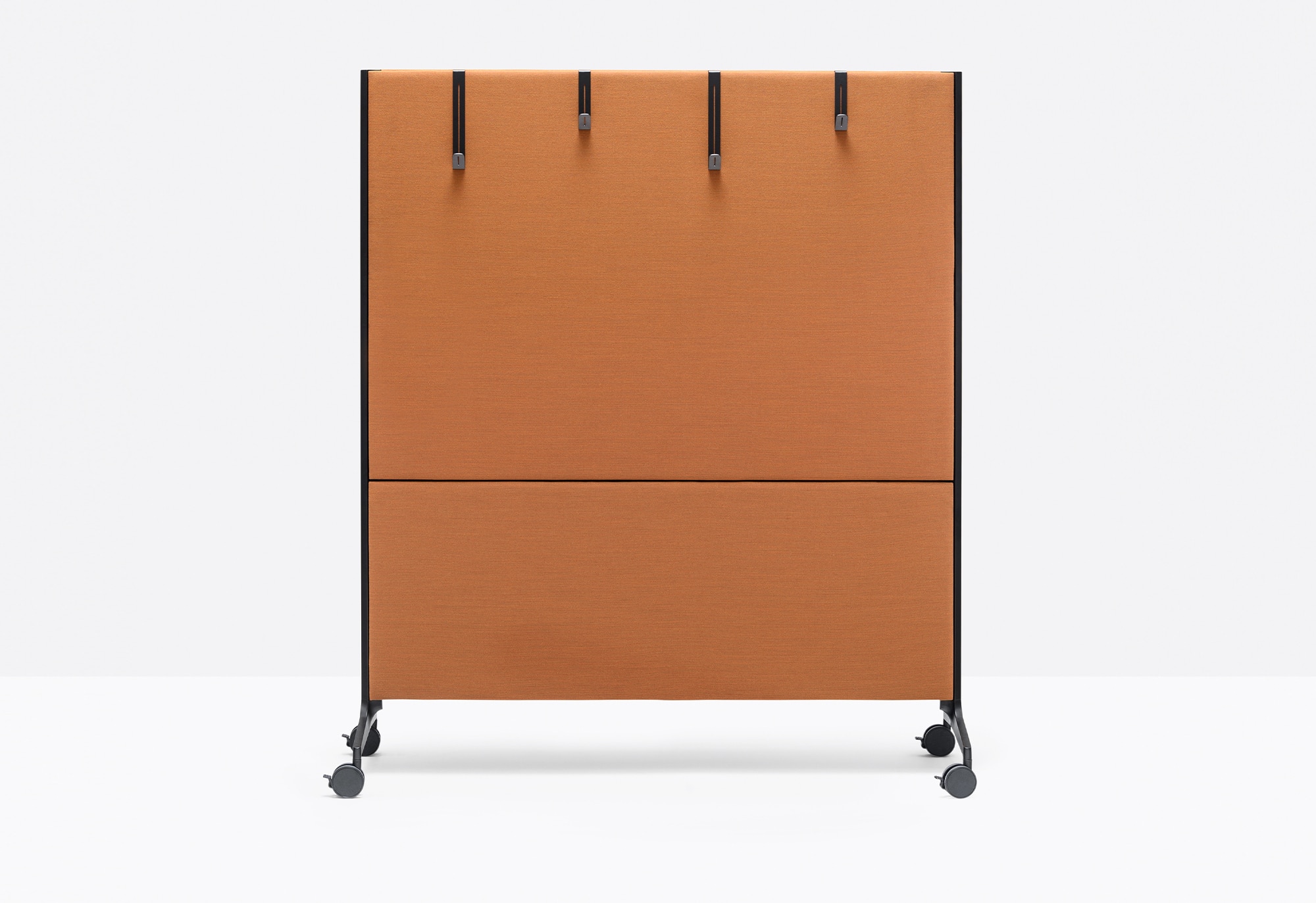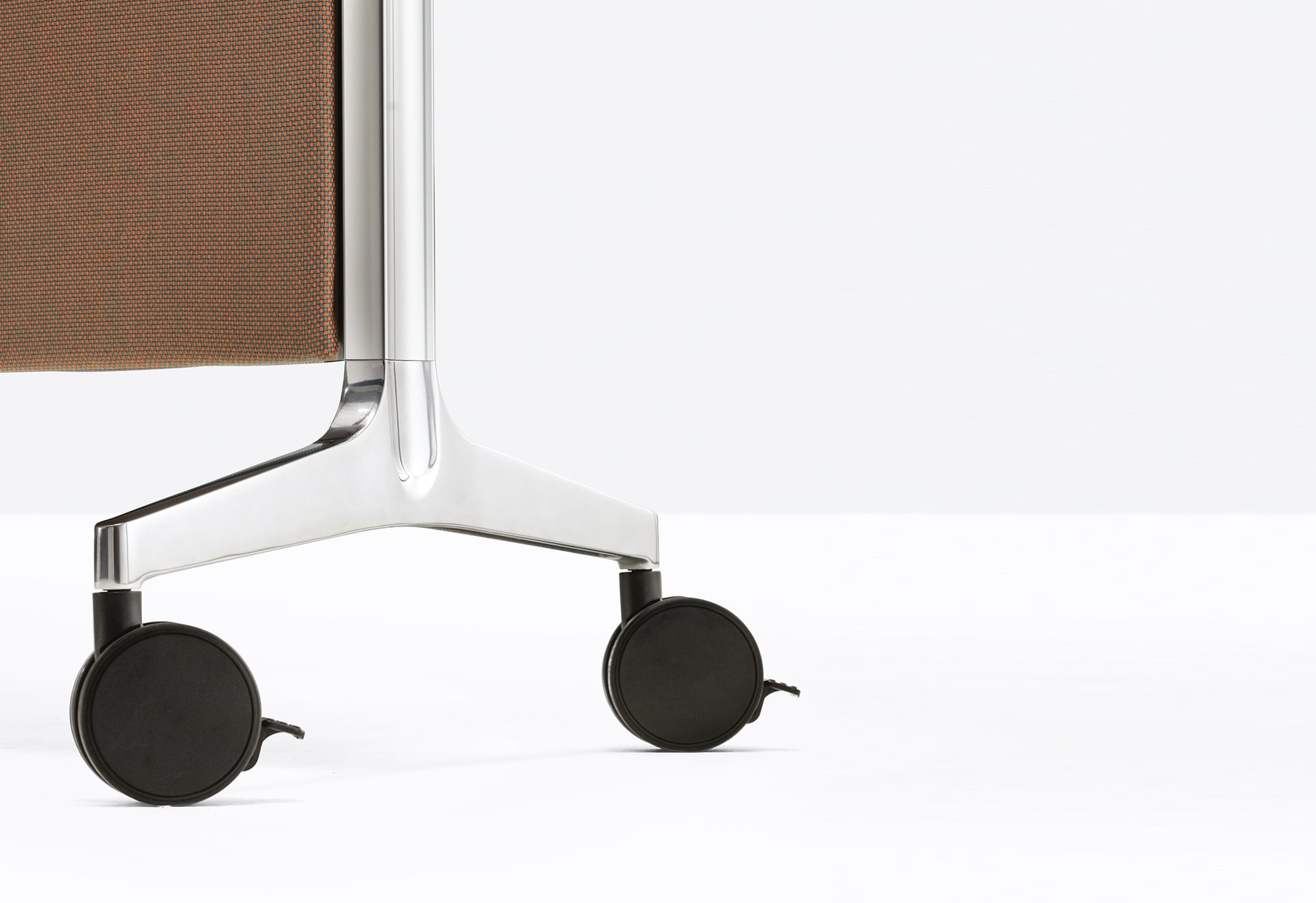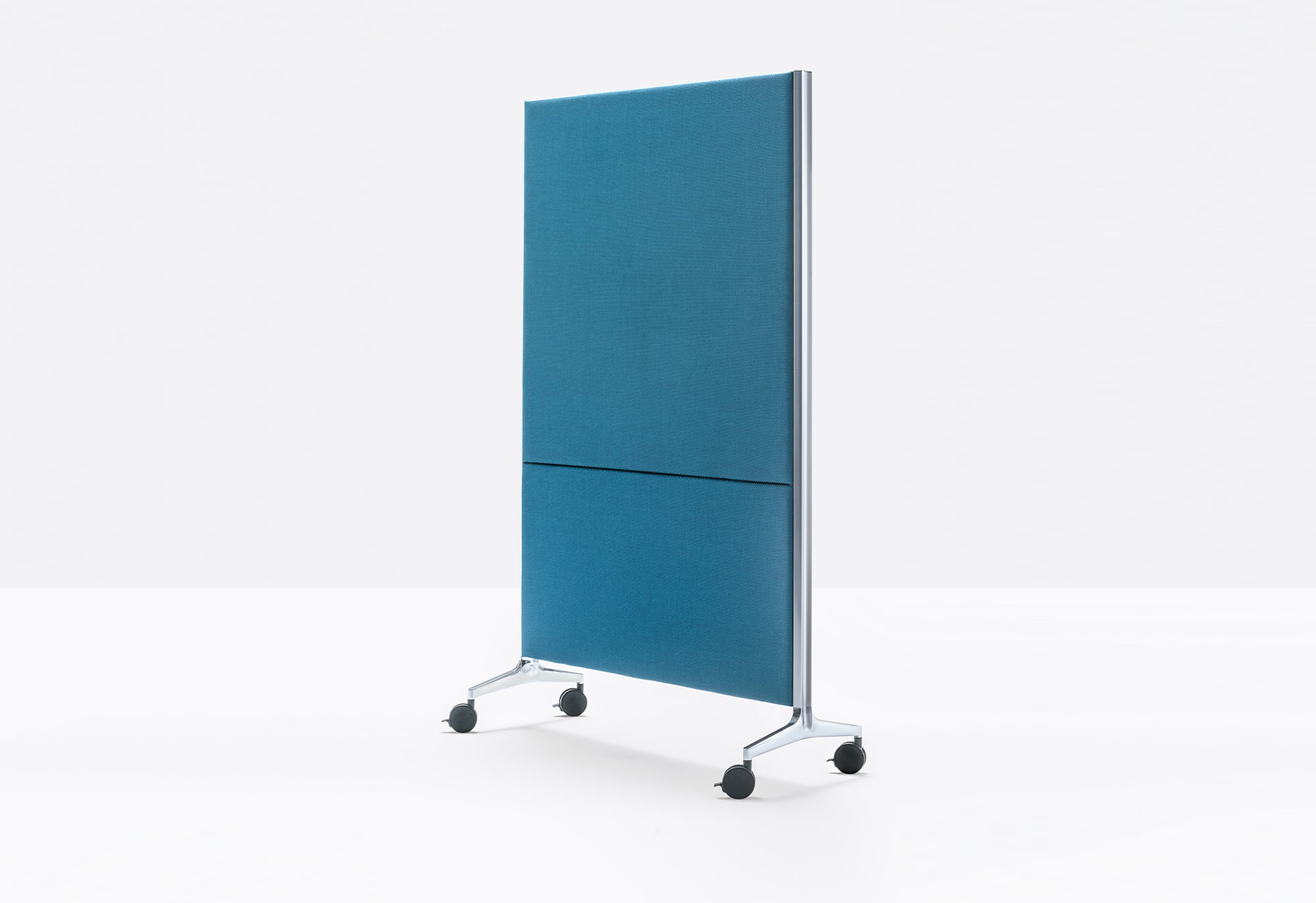 Ypsilon Connect is an elegant and functional self-supporting, sound absorbing partition panel. One of the greatest strengths of this product lies in its extensive customisation possibilities thanks to which users can create ever new layouts, manage their spaces more effectively and create welcoming office spaces or functional training and meeting rooms. Ypsilon Connect is characterised by sound absorbing panels that are shaped around a structure formed by two die-cast aluminium bases and extruded aluminium columns. It is possible to add some accessories, such as shelves or coat hangers at any of its sides. It can be also wired to enable the installation of a TV screen holder. Available with and without castors.