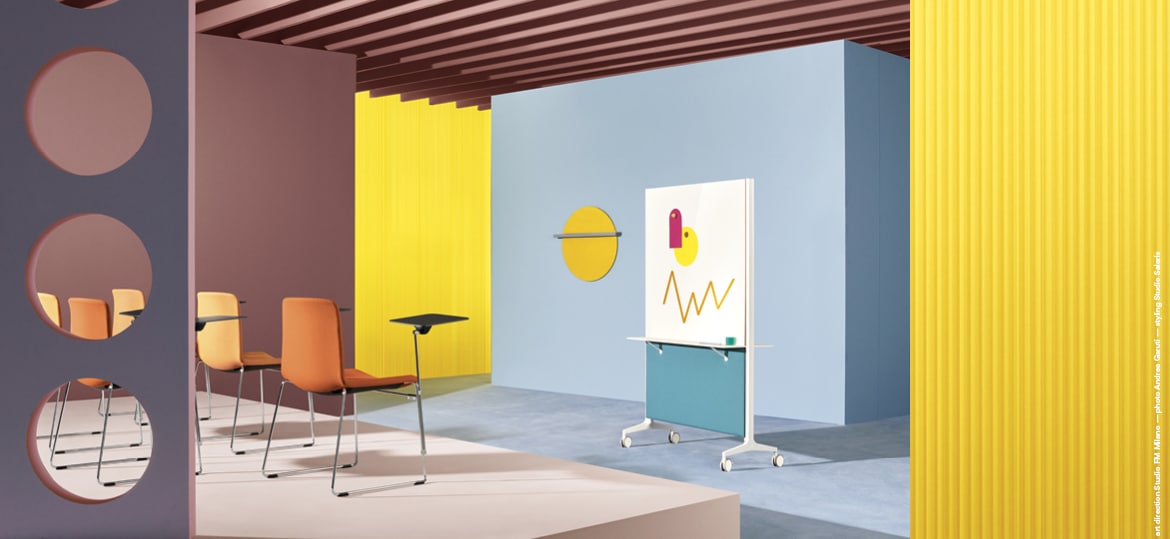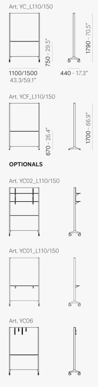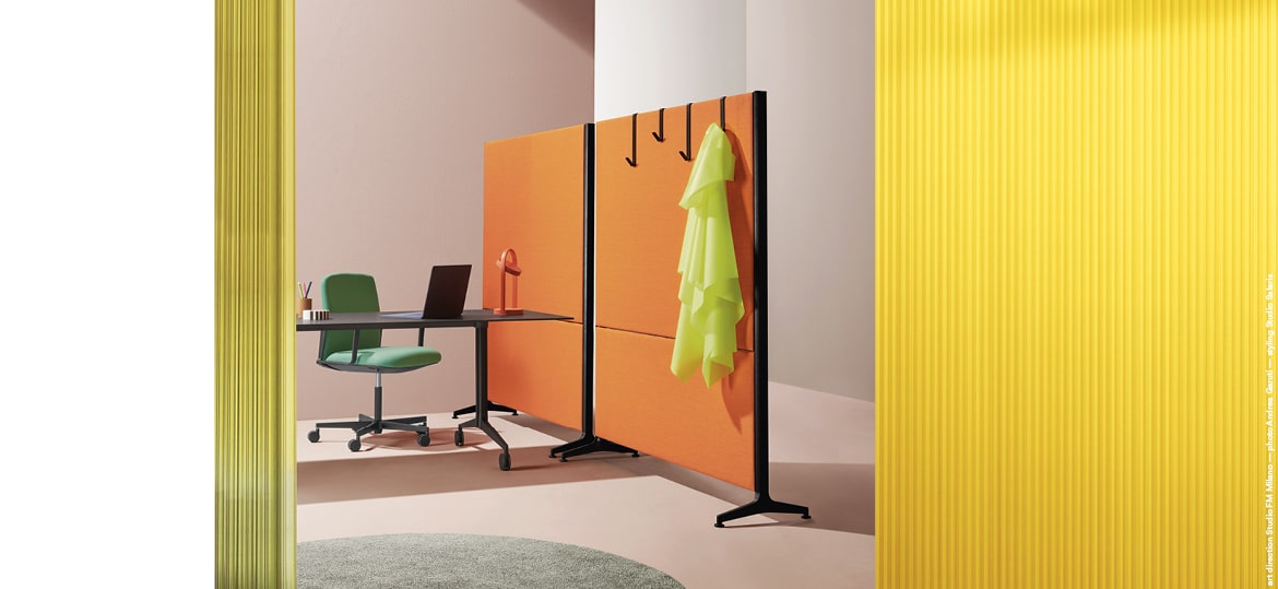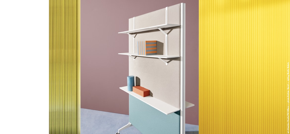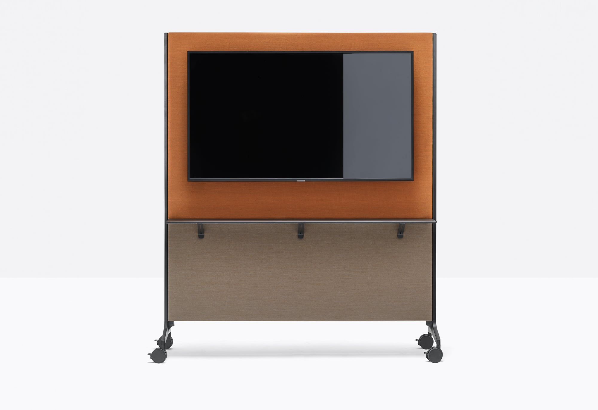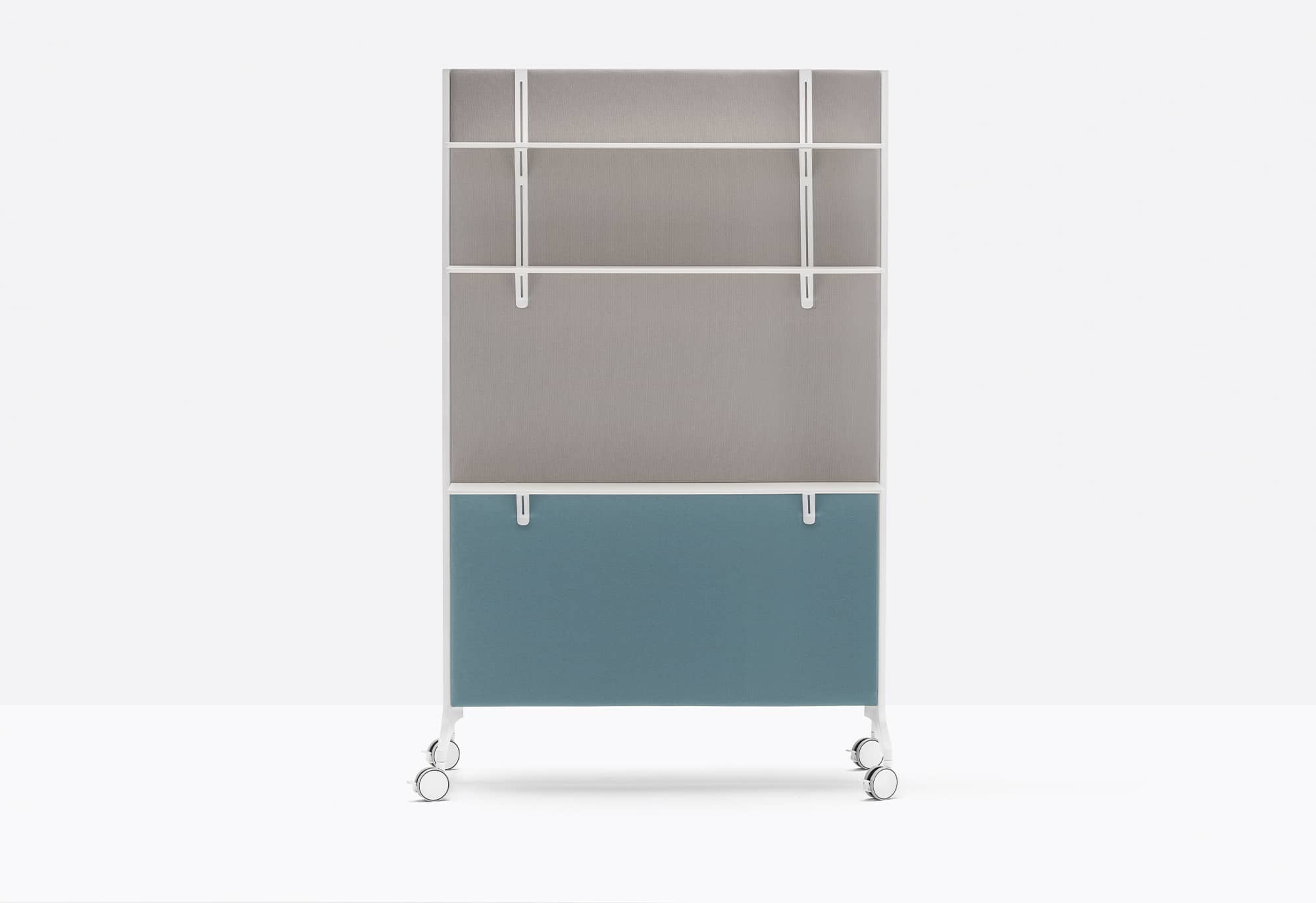 Ypsilon Connect is an elegant and functional self-supporting, sound absorbing partition panel. One of the greatest strengths of this product lies in its extensive customisation possibilities thanks to which users can create ever new layouts, manage their spaces more effectively and create welcoming office spaces or functional training and meeting rooms. Ypsilon Connect is characterised by sound absorbing panels that are shaped around a structure formed by two die-cast aluminium bases and extruded aluminium columns. It is possible to add some accessories, such as shelves or coat hangers at any of its sides. It can be also wired to enable the installation of a TV screen holder. Available with and without castors.