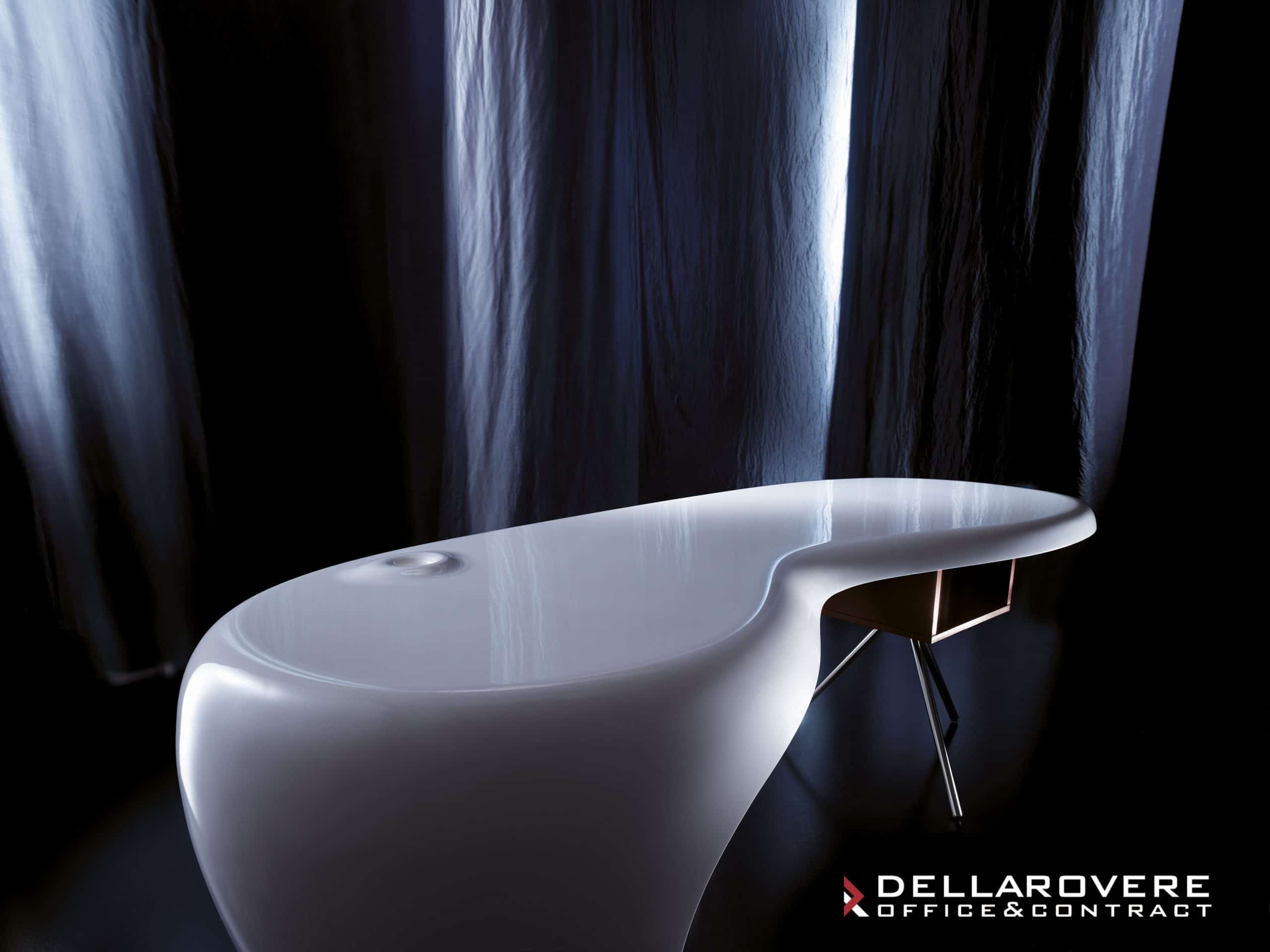 Designand elegance are features of that project standing out for formand innovation. The use of innovative materials which are unusual for office furniture though extremely engaging, allow a possible placement of the product even in different circles truly different from the ones it had been originally made for. Home interior, welcome points, shops or galleries become possible areas to definewith the clean line of that model.UNO design office desk(220×103 h75 cm) has a free-standing moulded body in high density polyurethane; its box is produced in a melamine coated wooden agglomerate and ABS edges. The bearing tripod is chrome plated. It is lacquered with GLOSSY or EMBOSSED MAT paints in following colours: cloud White, shy Pink, inspired Purple, stormy Black, fresh Green, blossom Orange. A range of METALLIC colours is available, as well: Morning Gold, Water’s Reflection, Free Blue. On demand it is possible to have customized colours (please select colour from RAL scale or NCS colour)